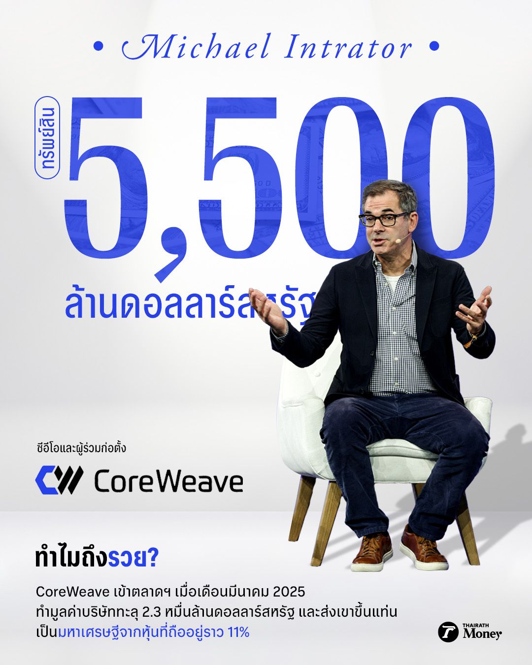 Michael Intrator ซีอีโอและผู้ร่วมก่อตั้ง CoreWeave บริษัทผู้ให้บริการคลาวด์และให้เช่าพื้นที่ประมวลผลโดยเฉพาะในงานด้าน AI ปัจจุบันมีทรัพย์สินรวมกว่า 5,500 ล้านดอลลาร์สหรัฐ