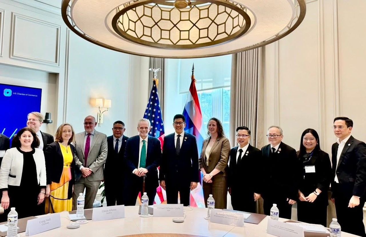 นอกจากนี้ คณะผู้แทนไทยยังได้เข้าหารือกับหอการค้าสหรัฐฯ หรือ U.S. Chamber of Commerce (USCC) โดยแลกเปลี่ยนมุมมองกับผู้บริหารบริษัทชั้นนำ อาทิ Dow Chemical, Chevron, Netflix, PepsiCo, Visa และ IBM ซึ่งต่างมีฐานการดำเนินงานในประเทศไทย