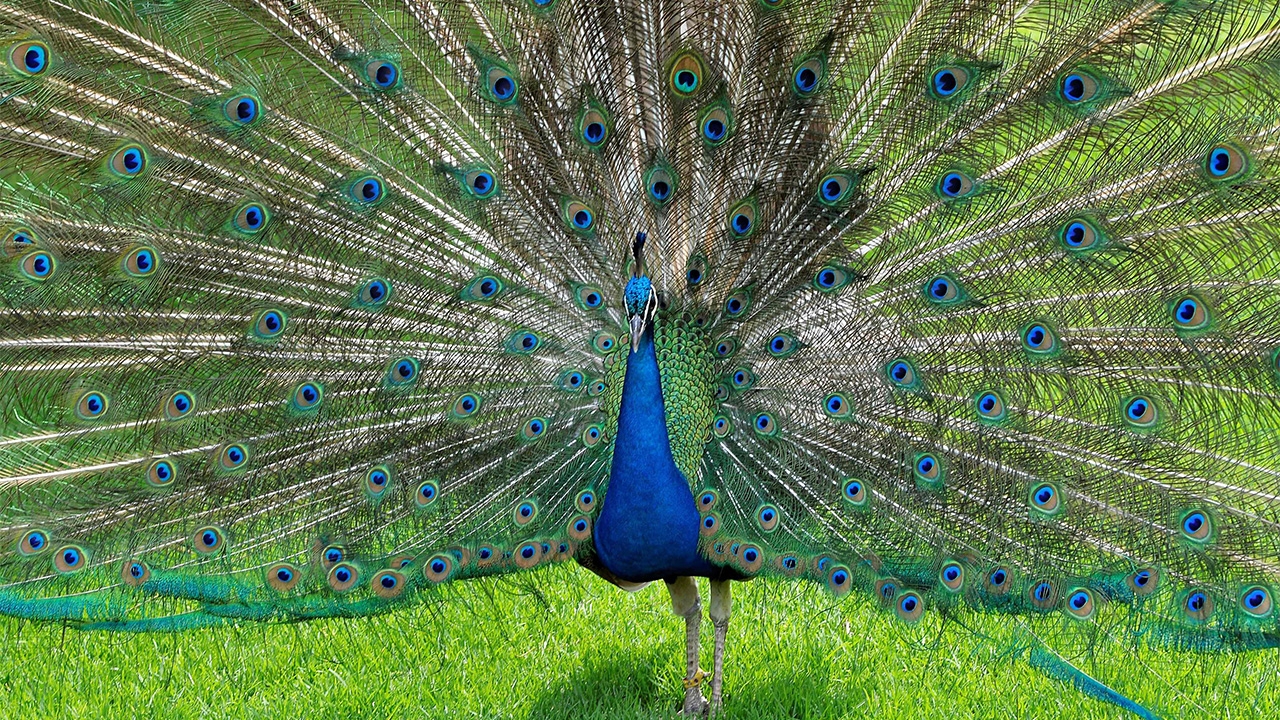 ถึงฤดูผสมพันธุ์เจ้านกยูงอินเดีย (Indian Peafowl) มีชื่อวิทยาศาสตร์คือ Pavo cristatus ตัวผู้ก็กางขนหางขนาดยาวที่โดดเด่นด้วยสีเขียวอมน้ำเงิน มีลายแววมยุราที่ใหญ่และสวยงามมาก โดยเวลาเกี้ยวพาราสีนกยูงตัวเมียจะใช้การรำแพน นกยูงอินเดียอยู่ในวงศ์เดียวกับไก่ฟ้า (Phasianidae) แต่มีขนาดใหญ่ที่สุด นกยูงตัวผู้จะมีขนสวยงามและเข้มกว่านกยูงตัวเมีย ขนหงอนเป็นรูปพัด.