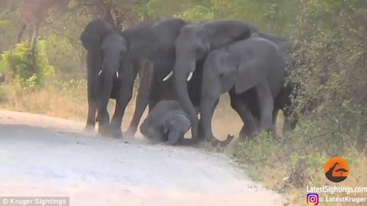 โดยหลังจากใช้เวลาอยู่นานพอสมควร ความพยายามของฝูงช้าง ก็ดูเหมือนจะสำเร็จ เมื่อเจ้าลูกช้างน้อยเหมือนจะสามารถลุกขึ้นและเดินต่อไปได้ แต่แล้วทุกอย่างก็จบลง เมื่อมันไปนอนสิ้นใจตายอยู่อีกฝั่งหนึ่งของถนนในที่สุด ขณะที่แม้จะมีการแจ้งเจ้าหน้าที่ เพื่อให้รีบเข้าไปให้การช่วยเหลือแล้ว แต่ทุกอย่างก็สายเกินไป.