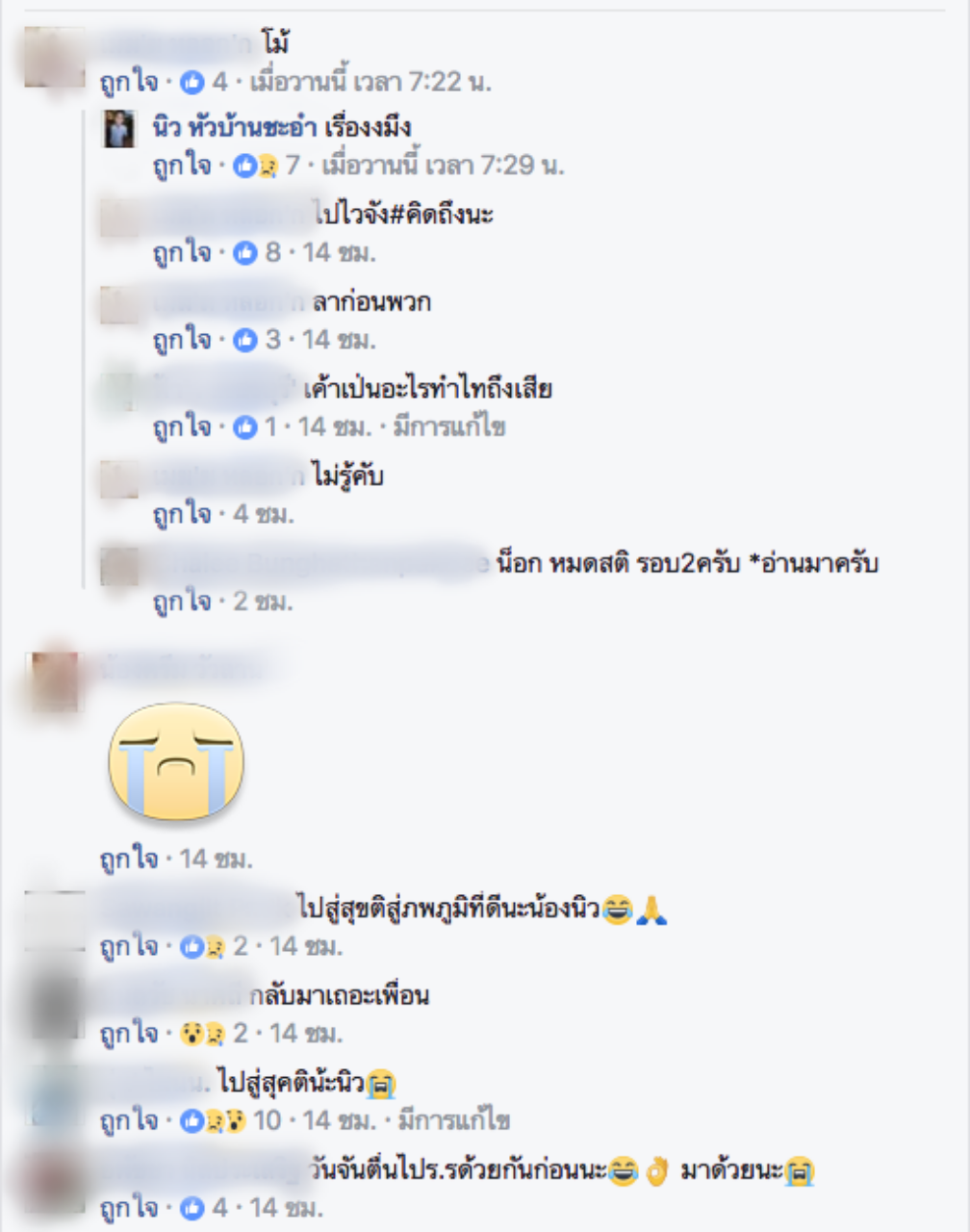 จากการตรวจสอบของผู้สื่อข่าว พบว่า เมื่อเวลา 06.47 น. วันที่ 21 ก.ค. 60 เด็กหนุ่มได้โพสต์ข้อความลงบนเฟซบุ๊ก ‘นิว หัวบ้านชะอำ’ เป็นโพสต์สุดท้ายโดยมีข้อความระบุว่า “โรงเรียนก้อยากไปทำไมป่วยบ่อยจังว้ะ” ก่อนที่เขาจะเสียชีวิตลงใน 16.30 น. วันถัดมา ซึ่งเป็นที่เศร้าสลดใจของเพื่อนๆ เป็นอย่างมาก จึงได้มีเพื่อนๆ เข้ามาบอกลาครั้งสุดท้ายเป็นจำนวนมาก