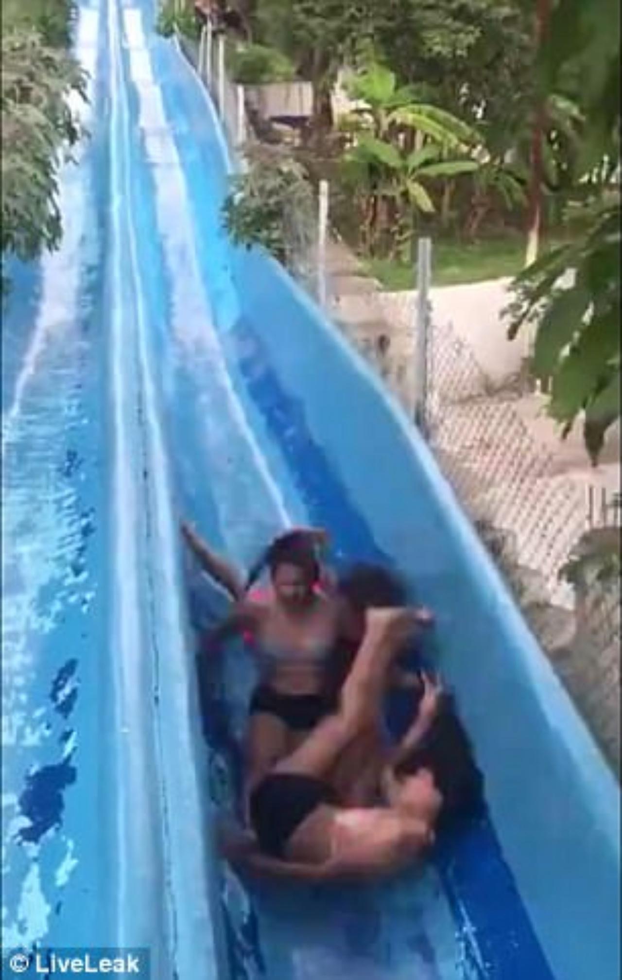 สำนักข่าวต่างประเทศ เผยแพร่คลิปอุบัติเหตุในสวนน้ำแห่งหนึ่ง ของ ประเทศเม็กซิโก เมื่อหญิงสาวคนหนึ่งกำลังช่วยดันเพื่อนที่ติดอยู่กลางสไลเดอร์น้ำ แต่แล้วอีกเพียงไม่กี่ชั่วอึดใจต่อมา ผู้เล่นคิวต่อมาได้ไถลตัวลงมาอย่างรวดเร็วโดยไม่ทันเห็นผู้หญิงสองคนแรก ที่ยังติดอยู่ จนกระทั่งทำให้ทั้งสามคนปะทะกันอย่างรุนแรง จนหวิดจะทำให้คนหนึ่งเกือบต้องหลุดออกจากสไลเดอร์ ก่อนที่คลิปจะจบการบันทึกลง