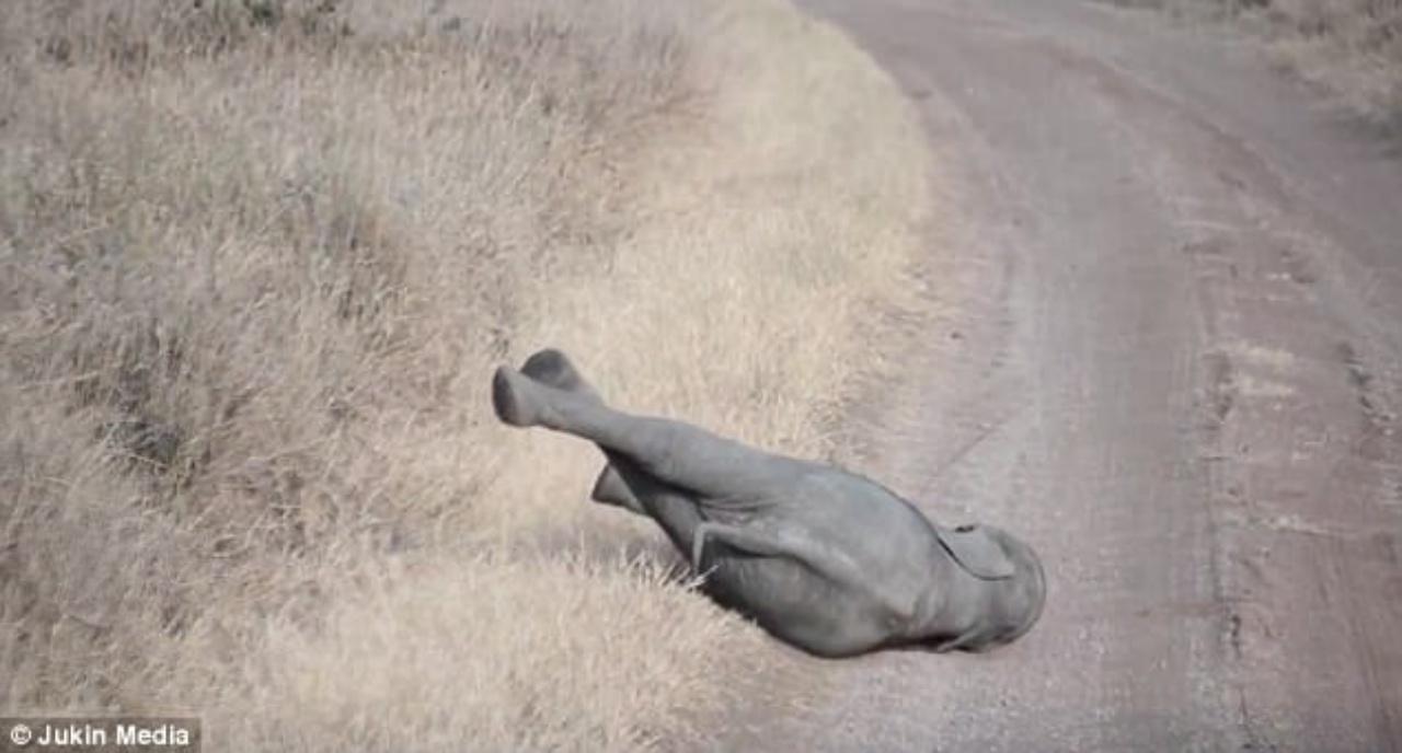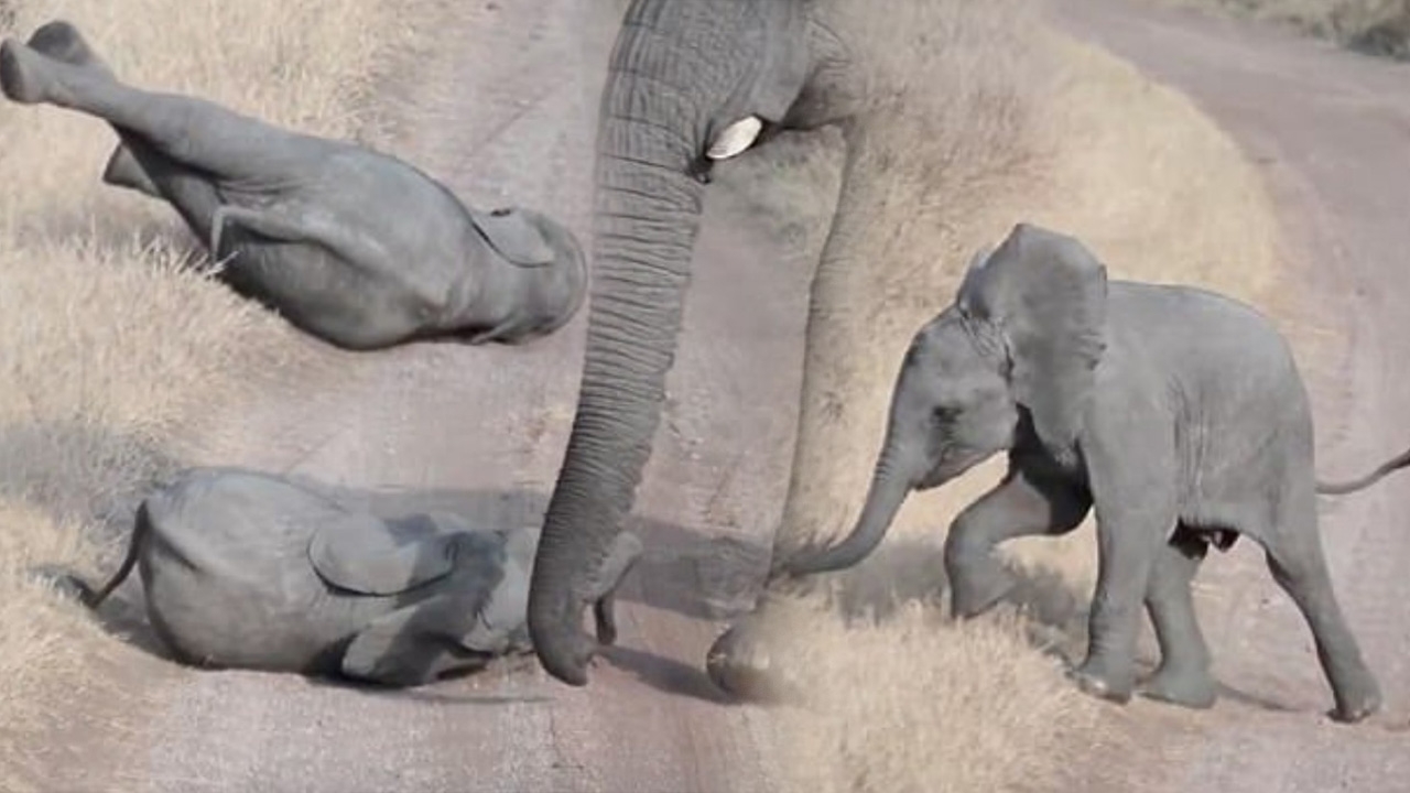 สำนักข่าวต่างประเทศ เผยแพร่คลิปสุดประทับใจ เมื่อลูกช้างน้อยน่ารักน่าชังตัวหนึ่ง ออกอาการฟาดงวงฟาดงา (ของจริง) เหวี่ยงใส่พ่อช้างแม่ช้าง ด้วยการลงไปนอนดิ้นกับพื้นราวกับเด็กน้อย ขณะที่โขลงช้างกำลังเดินข้ามถนนที่เต็มไปด้วยฝุ่นแห่งหนึ่งในทุ่งสะวันนา แอฟริกา