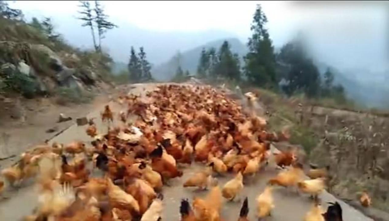 โดยคลิปดังกล่าวเป็นภาพที่ถูกบันทึกไว้โดยชาวนาคนหนึ่ง เมื่อวันที่ 14 ส.ค. เมื่อเค้าเป่านกหวีดเรียกฝูงไก่ ทันใดนั้นเอง ฝูงไก่นับร้อยตัวต่างกระพือปีกบินถลาลงจากภูเขา ลงไปเดินอยู่บนถนนอย่างสุดเหลือเชื่อ และเมื่อเป่านกหวีดขึ้นอีกครั้ง เจ้าฝูงไก่ฝูงเดิมที่อยู่บนถนน ก็รีบวิ่งกรูกันเข้ามาล้อมหน้าล้อมหลังเจ้าของมันได้อีกด้วย