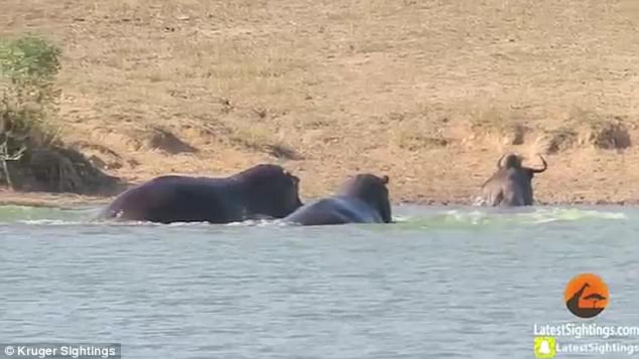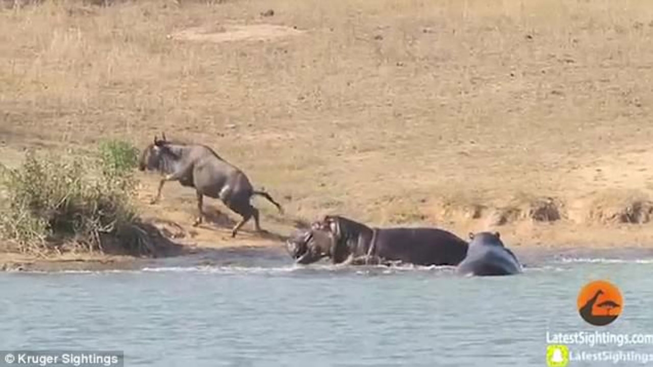โดย นักท่องไพรผู้ถ่ายโมเมนต์สุดเหลือเชื่อนี้เอาไว้ได้ เปลือยใจกับผู้สื่อข่าวว่า เหตุการณ์ดังกล่าวเกิดขึ้นขณะที่ ฝูงม้าลายและวิลเดอบีสต์ กำลังอพยพข้ามแม่น้ำ แต่แล้ว เจ้าวิลเดอบีสต์ตัวหนึ่ง ก็พลาดท่าถูกจระเข้ งับเข้าที่ขาและพยายามจะลากมันลงไปเป็นอาหารใต้น้ำ โดยภายหลังจากฝ่ายผู้ล่า และผู้ที่กำลังจะตกเป็นเหยื่อดิ้นรนต่อสู้กับเกือบ 8 นาที จนเจ้าวิลเดอบีสต์ หมดแรง ใกล้จะจมลงไปใต้น้ำแบบเจียนอยู่เจียนไป ทันใดนั้น จู่ๆ ร่างของ ฮิปโปยักษ์ 2 ตัว ก็ปรากฏตัวขึ้น พร้อมกับปรี่เข้าไปช่วยเหลือเหยื่อเคราะห์ร้าย จนกระทั่ง เจ้าจระเข้ต้องจำยอมคายเหยื่อออกจากปากไปในที่สุด