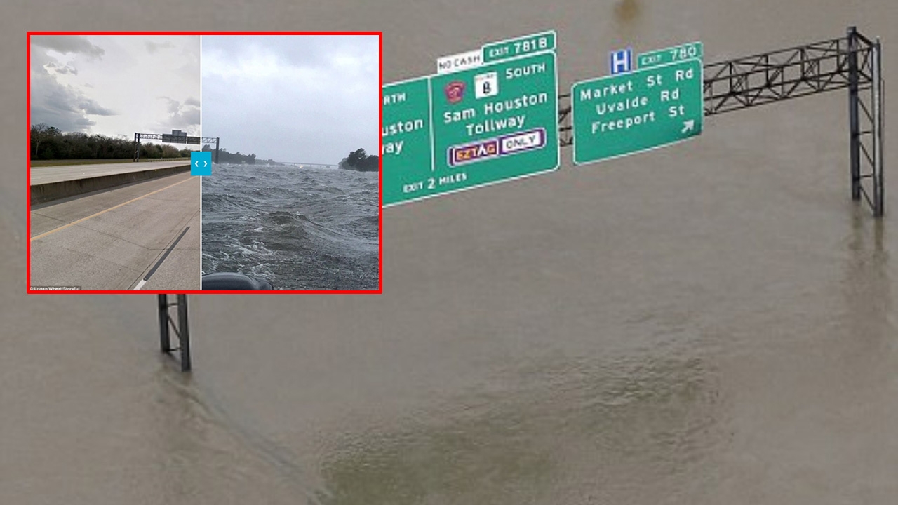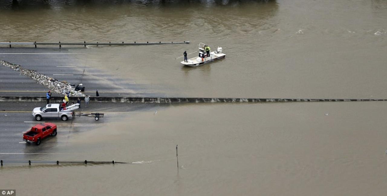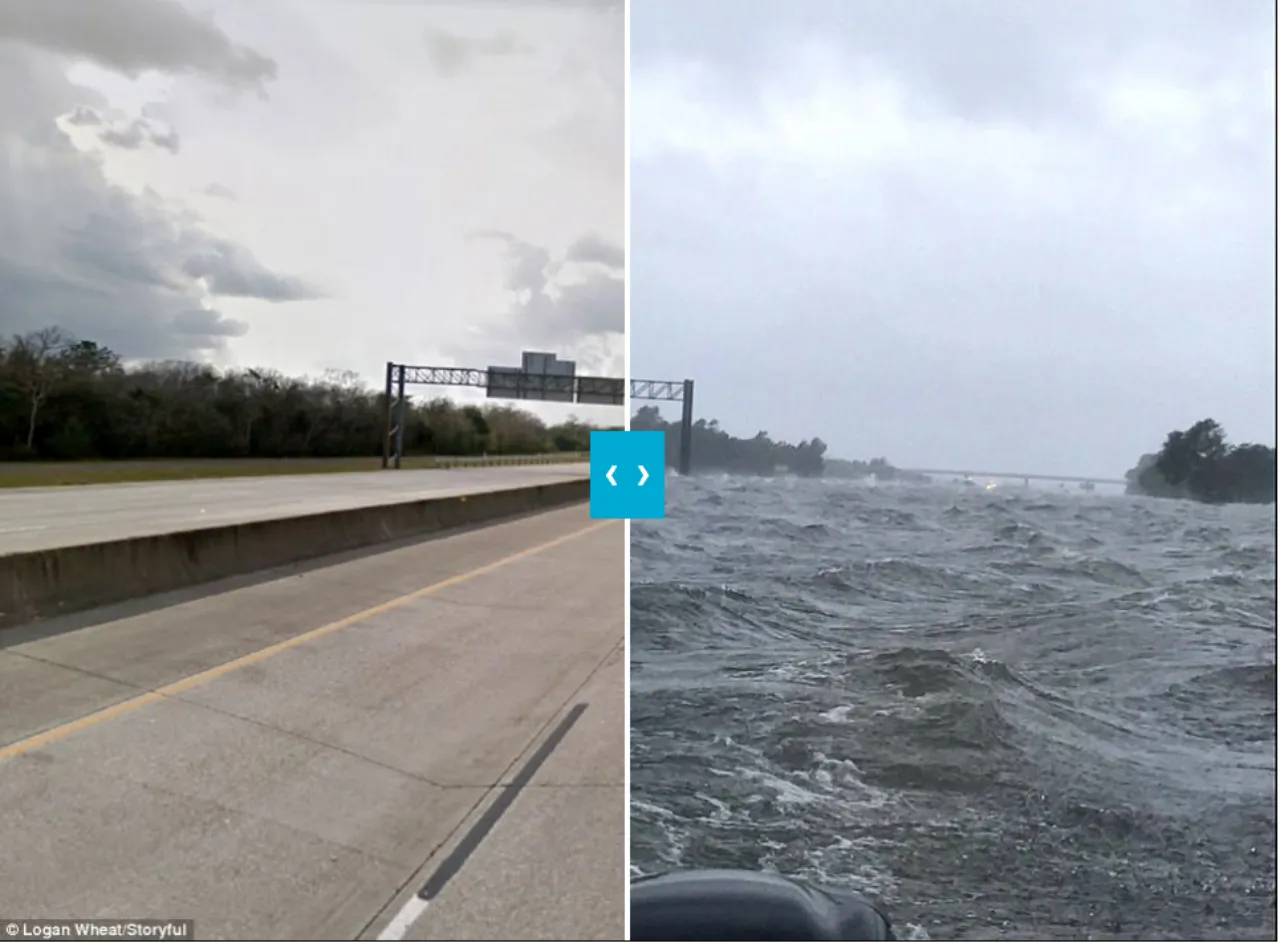 โดยคลิปที่แลดูราวกับ เรือที่กำลังแล่นอยู่ในมหาสมุทรนี้ เป็นฝีมือของ ช่างภาพที่มีชื่อว่า Logan Wheat ส่วนสถานที่เกิดเหตุ คือ ถนนสาย I-10 ซึ่งเป็นถนนที่เชื่อมต่อระหว่าง เมืองฮิวสตัน และ เมืองโบมอนต์ ที่ปัจจุบัน ได้แปลงสภาพกลายเป็นทะเลลงอย่างสิ้นเชิง และในระหว่างทาง ยังสามารถเก็บภาพของวัวหลายตัว ที่พยายามลอยคอเหนือระดับน้ำ เพื่อดิ้นรนเอาชีวิตรอดอีกด้วย