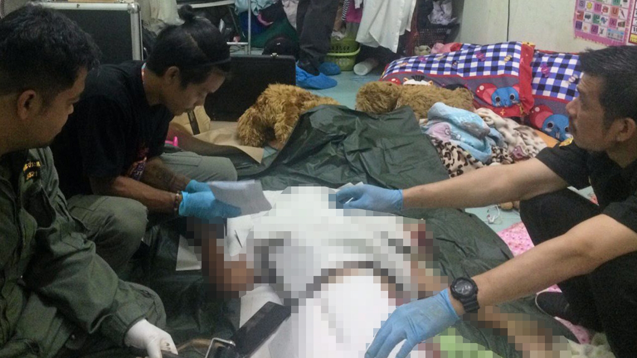 เจ้าหน้าที่ชันสูตรศพ น.ส.จันดี แสงฟ้า อายุ 32 ปี แม่ค้าขายไก่ย่าง ถูกทำร้ายจนซี่โครงหักเสียชีวิตภายในห้องเช่าเลขที่ 56/6 หมู่ 3 ต.ปากคลองบางปลากด อ.พระสมุทรเจดีย์ จ.สมุทรปราการ ตำรวจคาดเป็นฝีมือนายเอ็ม สามีใหม่ หลังเกิดเหตุหายตัวไปจากบ้าน เร่งติดตามไล่ล่าแล้ว.