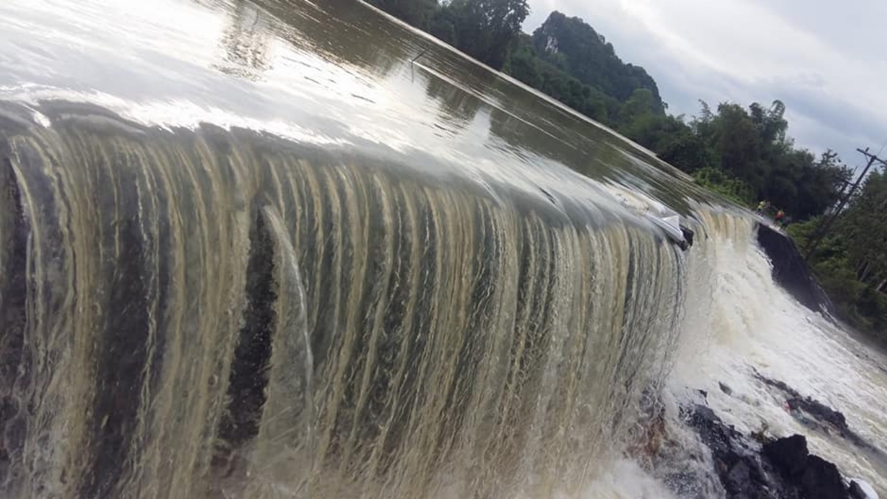 น้ำเชี่ยวกรากไหลผ่านพนังกั้นน้ำ ชาวเมืองตรัง หวั่นแตกพังลงมา ทะลักท่วมหนักในพื้นที่ต.หนองตรุด จมบาดาล ชาวบ้าน เผยน้ำท่วมครั้งนี้หนักสุด น้ำสูงกว่า 5 เมตร มิดหลังคาบ้าน ล่าสุดพนังกั้นน้ำบ้านปากหมัน ได้พังลงมาแล้ว...
