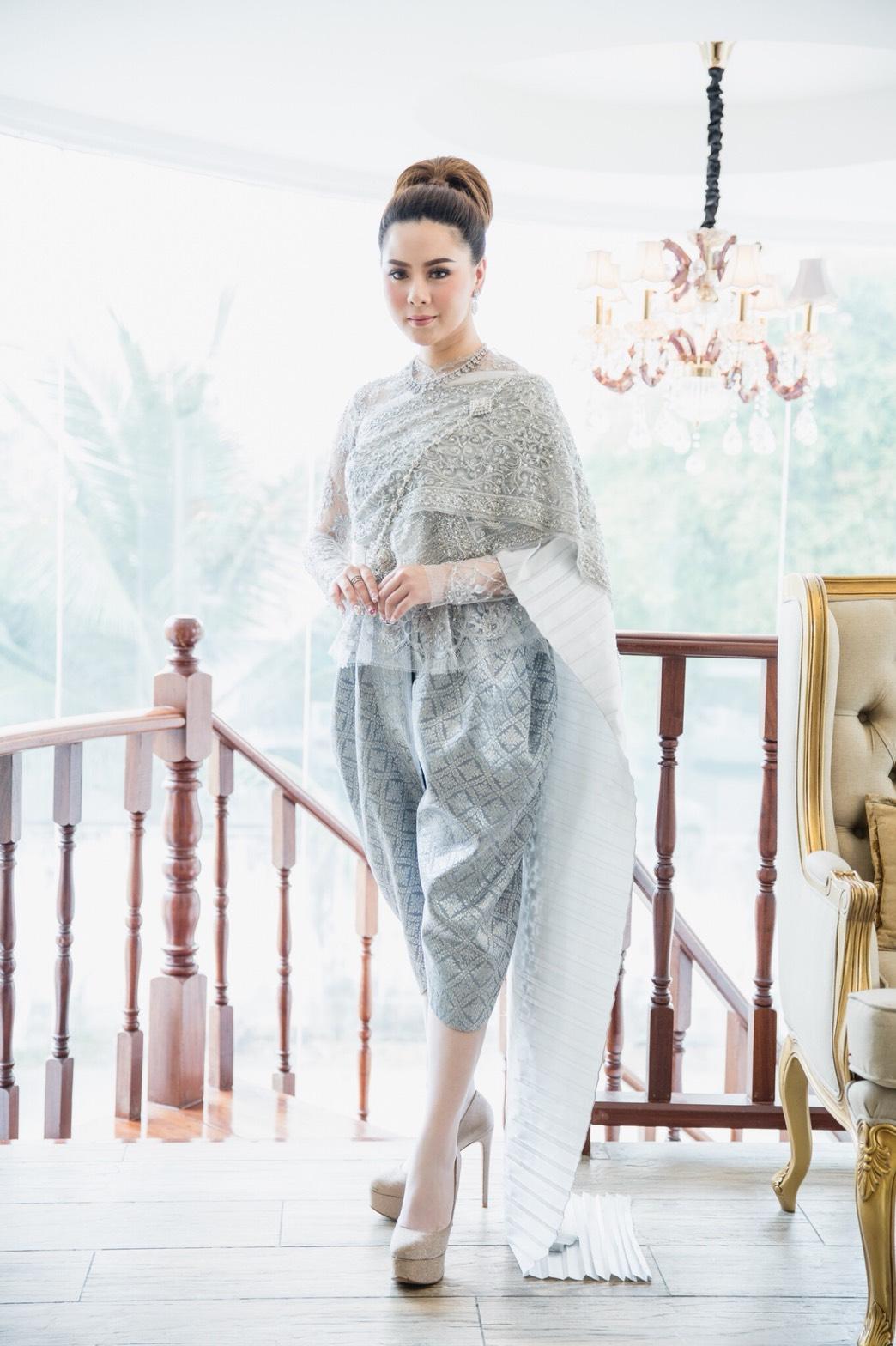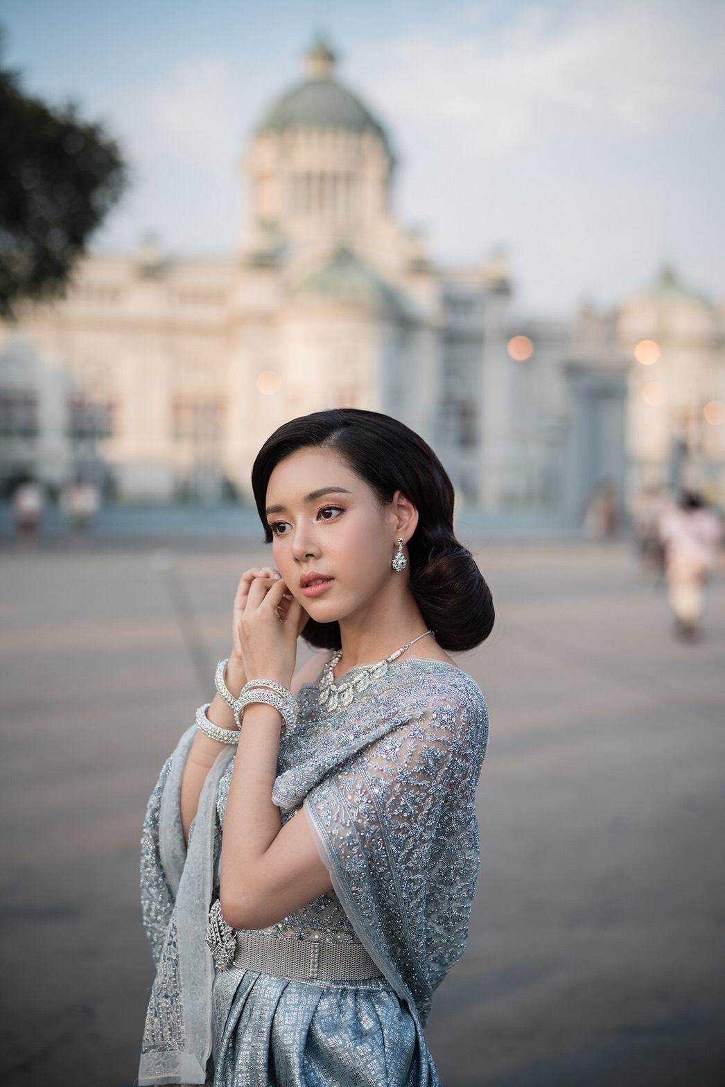 ชุดไทยที่สง่างามอยู่แล้ว ได้ย้ำความสง่างามเพิ่มขึ้นด้วยเครื่องประดับ สร้อยมุก สร้อยทอง และสร้อยเพชร ตามความเหมาะสม
