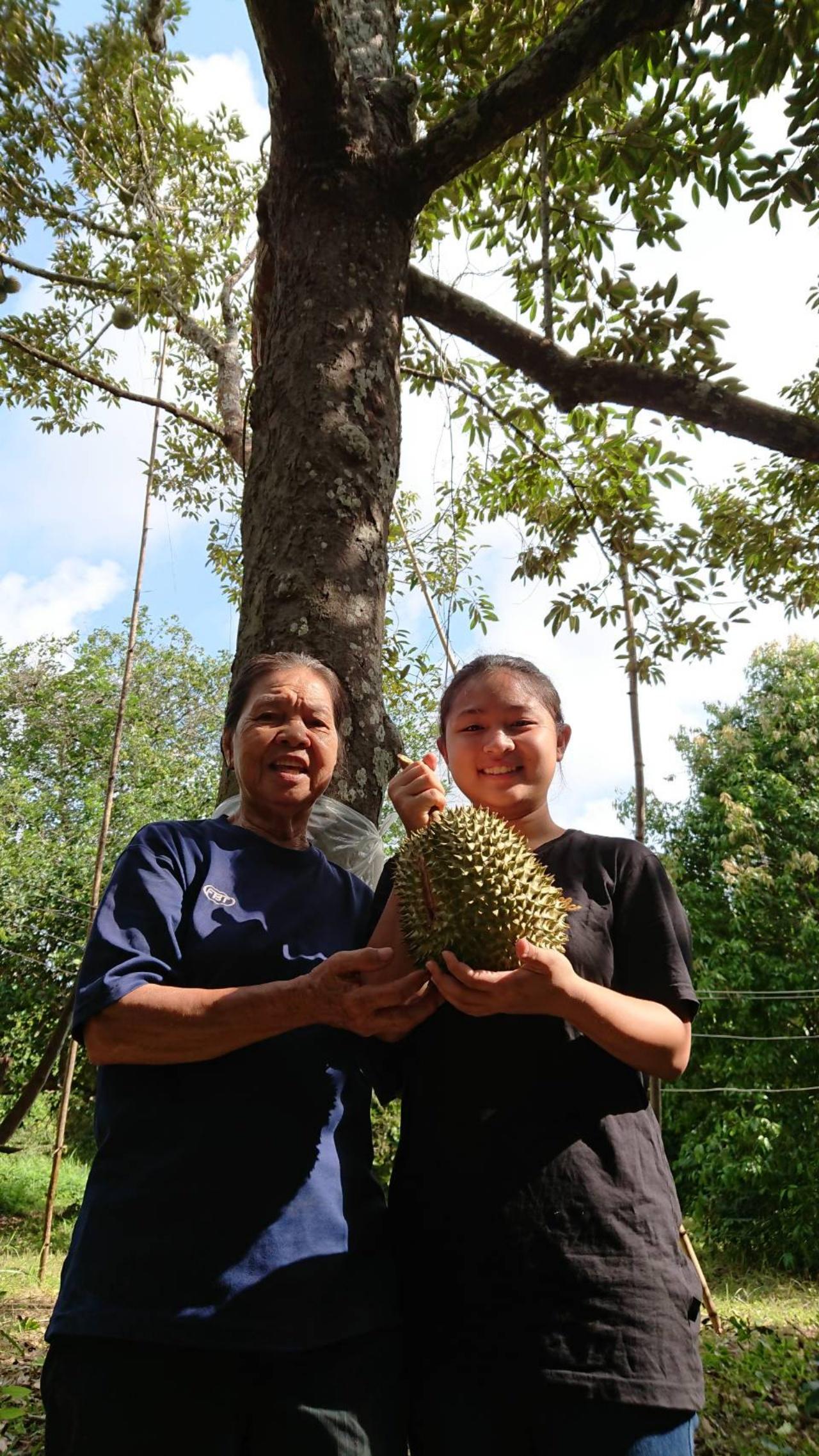 “สมัยอากงดูแลสวน จะมีทุเรียนพันธุ์พื้นเมืองแทบทุกสายพันธุ์ เช่น กบก้านสั้น กบพวง กบเล็บเหยี่ยว ชมพูศรี กบแม่เฒ่า กบตาแพ ตอนนี้กบชายน้ำมีอยู่ 20 ต้น ให้ผลประมาณ 200-300 ต่อต้น แต่จะเหลือผลสมบูรณ์สำหรับขาย เพียงแค่ 1 ใน 4 เท่านั้น เนื่องจากภัยธรรมชาติ ฝนตก ทำให้ผลหล่นเสียหาย หรือสัตว์ธรรมชาติ