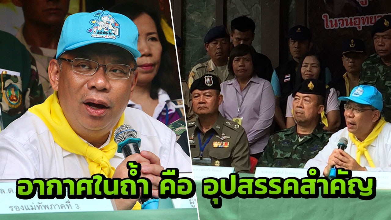 “ตัวแปรอากาศในถ้ำมี 2 ตัว เลเวล และคาร์บอนไดออกไซด์ เมื่ออยู่ที่จำกัด อากาศจะน้อย หากออกซิเจนอยู่ที่ 12 เปอร์เซ็นต์ สมองเร่ิมช้า ไม่ทำการ เข้าสู่ข่ายช็อก และโคม่า ขึ้นอยู่กับศักยภาพของแต่ละคน สิ่งที่ทำอยู่ตลอด คือเอาออกซิเจนเข้าในถ้ำให้ได้มาก ถ้ำทุกจุด เรตออกซิเจนน้อยลง แม้แต่โถง 3 ปั๊มอากาศบริสุทธิ์เข้าไปแทน และถอนกำลังที่ไม่จำเป็น มิฉะนั้นออกซิเจนน้อย คาร์บอนในเลือดเยอะ