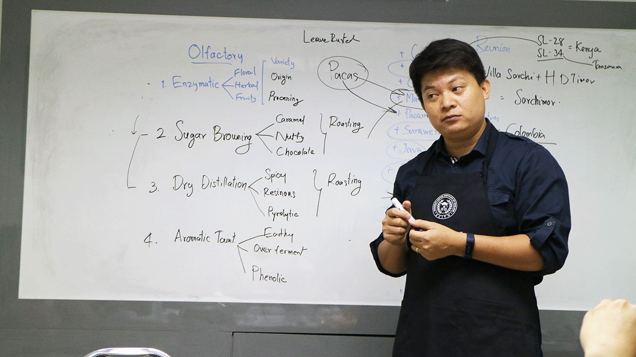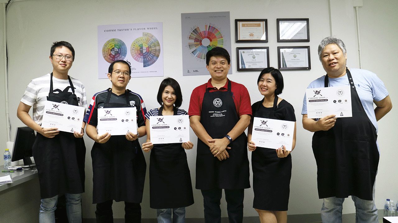 ครั้งนี้ผมไปเรียนรู้ที่ Specialty Coffee Institute of Thailand โดยมี Q-grader คุณนิวัตน์ เป็นผู้สอน สนุกมากครับในการเรียน โดยมีเพื่อนร่วมชั้นอีก 4 คน คือ คุณแทน คุณฝน คุณน้ำ และคุณป๊อก มาเรียนและแลกเปลี่ยนความรู้ แรกๆ เดาๆ กันกว่าจะจับรสชาติกันได้ กว่าจะดมและแยกแยะได้ เกือบตาย แต่สุดท้ายก็สามารถรู้ถึงสิ่งและความรับผิดชอบต่อคนในอุตสาหกรรมนี้ หนักหนาเหลือเกิน...