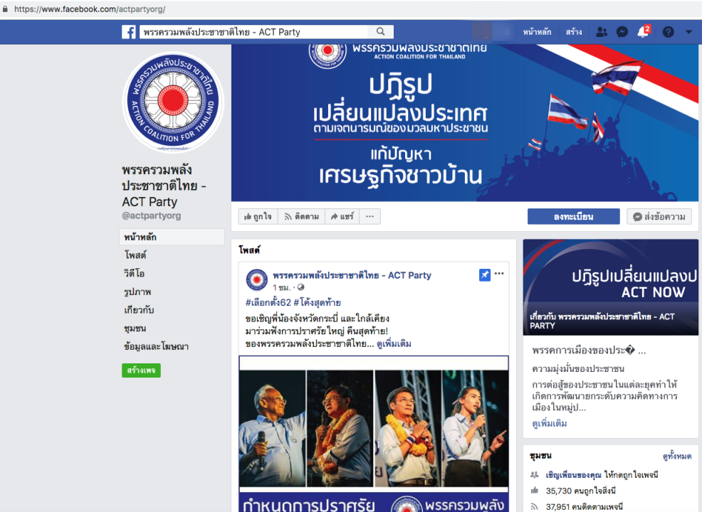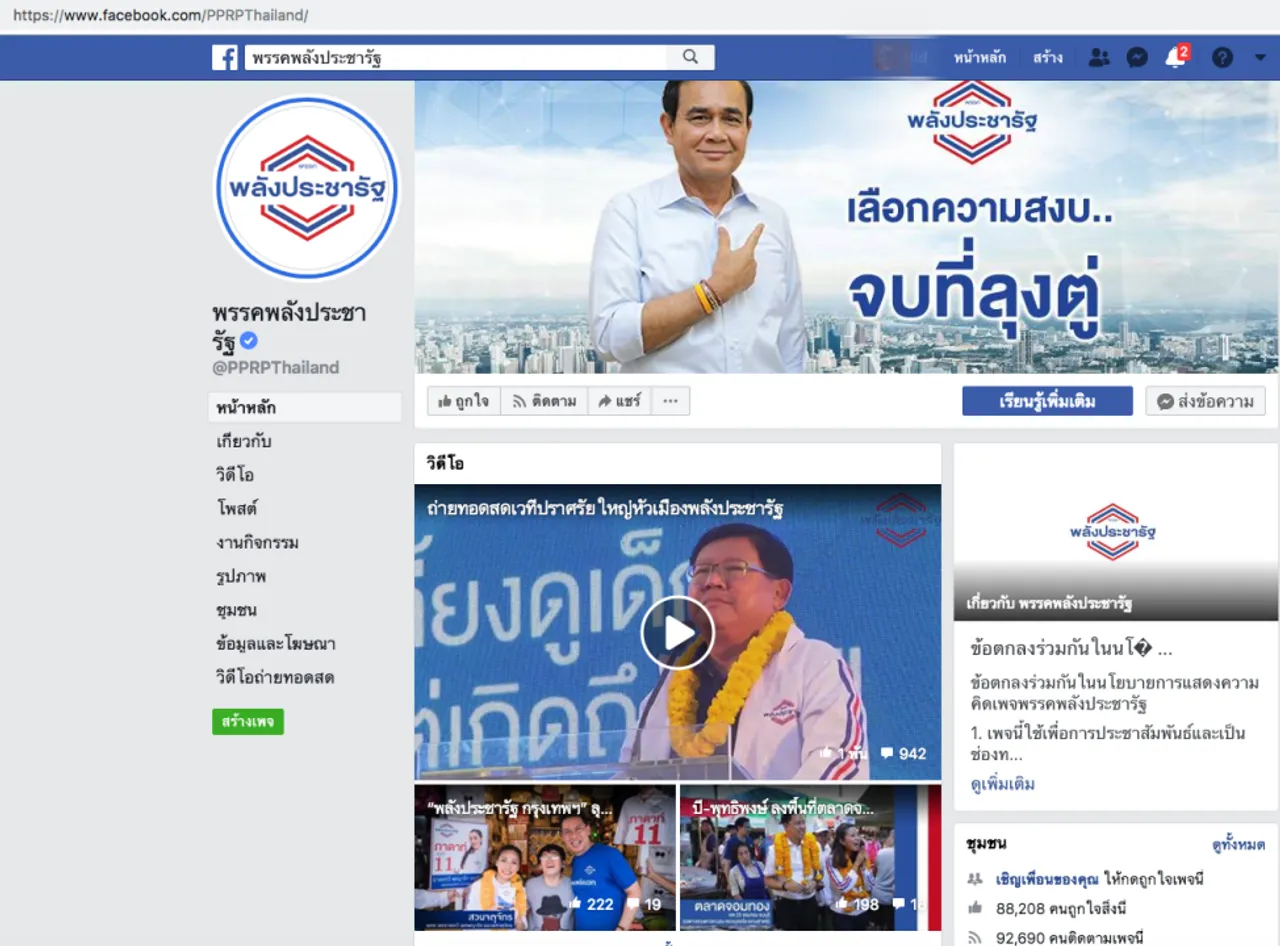 เลือกตั้ง ปี 62 ที่จะเกิดขึ้นในวันอาทิตย์ 24 มี.ค.นี้ ทุกพรรคออกหาเสียงกันอย่างคึกคัก และศึกเลือกตั้งครั้งนี้ เป็นยุค 4.0 การมีเฟซบุ๊กจึงเป็นอีกกระบอกเสียงที่พรรคการเมืองมี เพื่อใช้เป็นอีกช่องทางสื่อสาร บอกกล่าวแนวนโยบายการทำงาน รวมถึงบอกเล่าข้อมูลที่เป็นประโยชน์ และเข้าถึงพี่น้องประชาชนได้ง่าย และรวดเร็วขึ้น เพราะแม้แต่ พล.อ.ประยุทธ์ จันทร์โอชา ก็ยังเปลี่ยนไป ลุกขึ้นมาเปิดเพจและประกาศเล่นเฟซบุ๊กอย่างเป็นทางการ เมื่อต้นเดือน ต.ค. 61 โดยใช้ชื่อว่า “ประยุทธ์ จันทร์โอชา Prayut Chan-o-cha” เพื่อเป็นช่องทางในการสื่อสารกับประชาชน