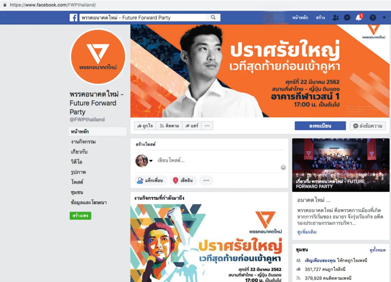 อันดับ 3 พรรคอนาคตใหม่ กดถูกใจ 351,727 คน และ กดติดตาม 379,928 คน