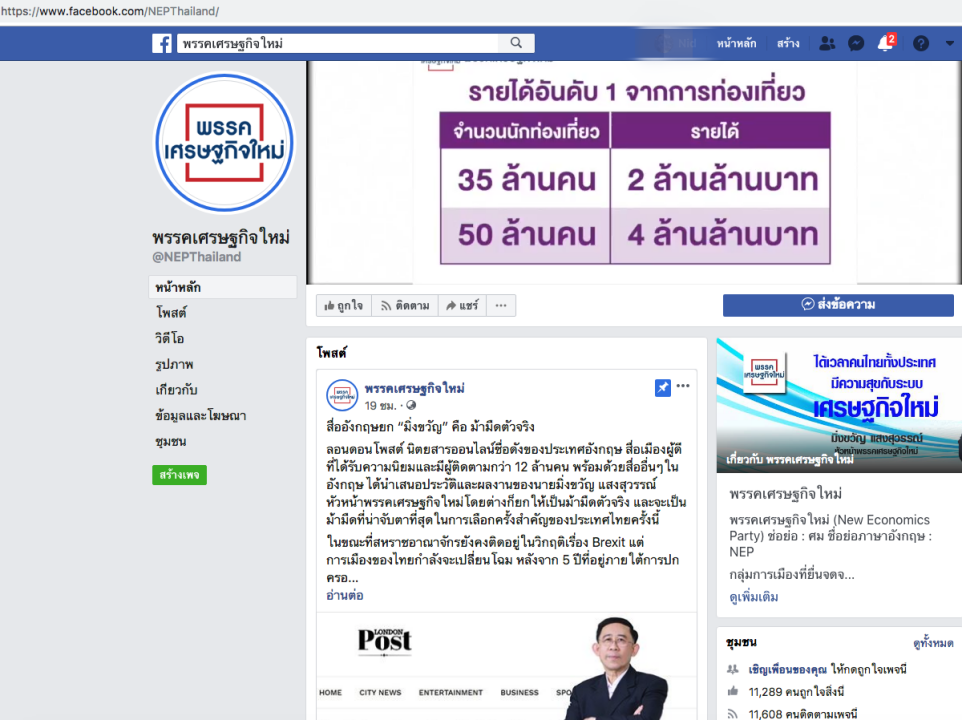 อันดับ 9 พรรคเศรษฐกิจใหม่ กดถูกใจ 11,289 คน กดติดตามเพจ 11,608 คน