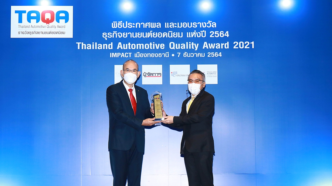บริษัท มิตซูบิชิ มอเตอร์ส (ประเทศไทย) จำกัด คว้า 2 รางวัลธุรกิจยานยนต์ยอดนิยมประจำปี 2564 หรือ TAQA Award ประกอบด้วย รางวัลธุรกิจยานยนต์ยอดนิยม ด้านบริการหลังการขาย ประเภทรถยนต์นั่งส่วนบุคคล และรางวัลธุรกิจยานยนต์ยอดนิยม ด้านบริการหลังการขาย ประเภทรถยนต์เพื่อการพาณิชย์ขนาด 1 ตัน โดยมิตซูบิชิ มอเตอร์ส ประเทศไทย ได้รับรางวัลอันทรงเกียรติ 2 รางวัลนี้ติดต่อกันเป็นปีที่ 2 แล้ว
