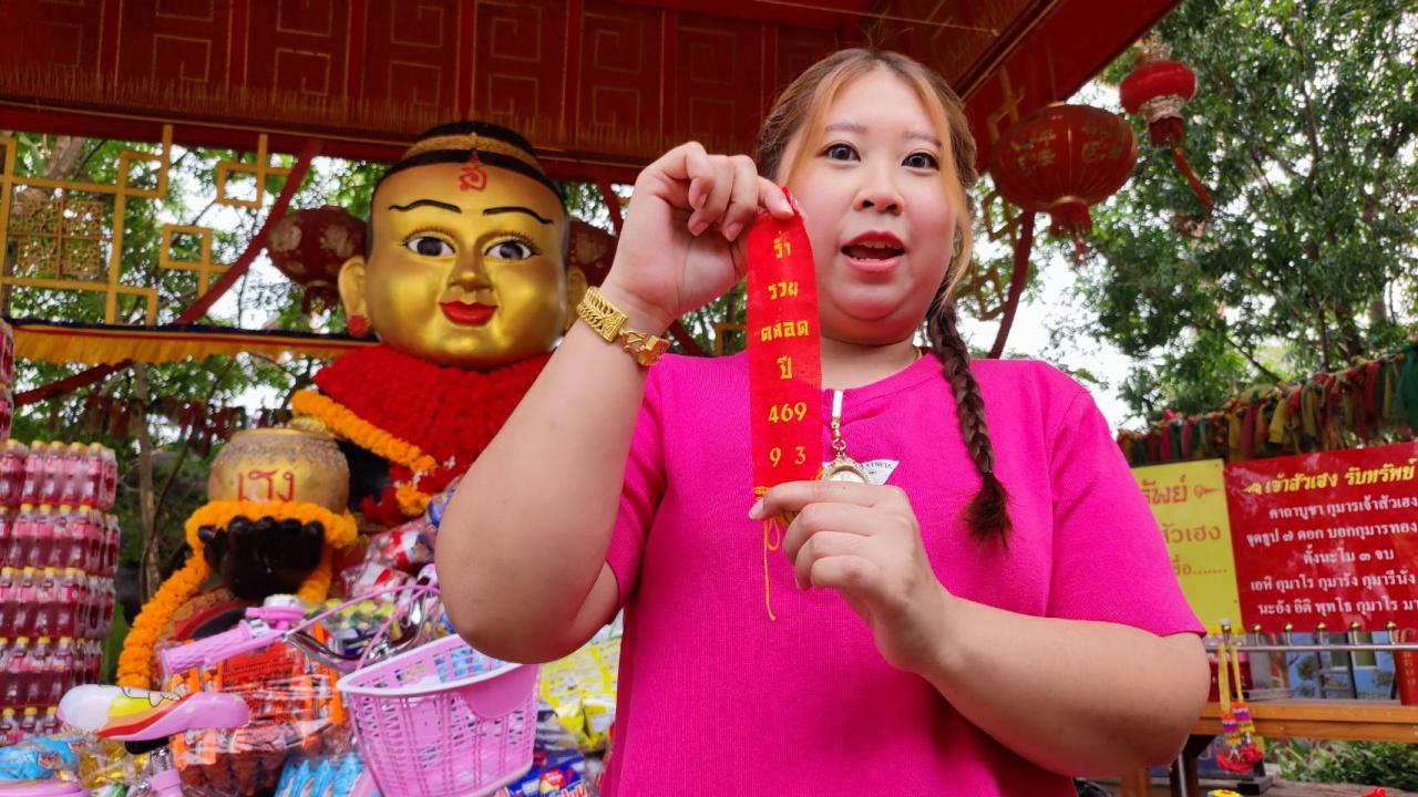 งวดที่แล้วรับทรัพย์ สาวดวงเฮงขนจักรยานมาแก้บน "กุมารทองเจ้าสัวเฮง" หลังมาขอโชคในเดือนเกิด คราวนี้ไม่ลืมส่อง "เลขเด็ด" หวังไปลุ้นอีกงวด 2/5/66