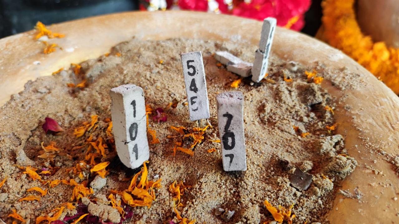 พอถูกก็เลยเอาจักรยานมาแก้บน 2 คัน สีชมพูกับแดง ทั้งนี้ยังได้จุดธูปเลขมงคลได้เลข 707 ส่วนเลขหางประทัดปรากฏเป็นเลข 469 และ 93 ก่อนกลับยังได้ไปส่องเลขในอ่างน้ำมนต์ ที่จับกลุ่มกันคือ 03 21 และ 86 จึงนำโทรศัพท์ขึ้นมาถ่ายไว้ เพื่อไปลุ้นรวย 2/5/66