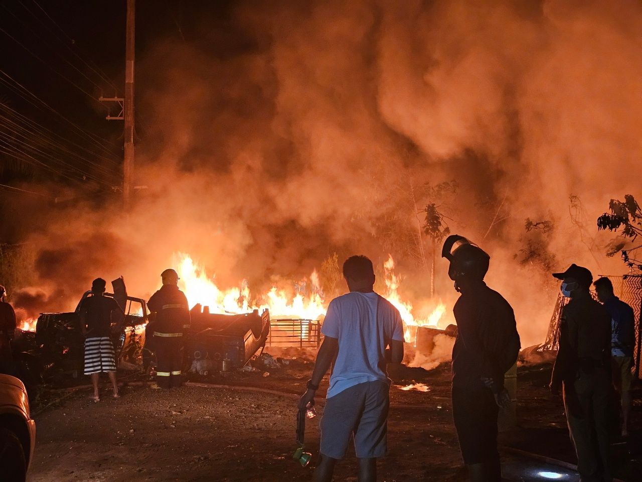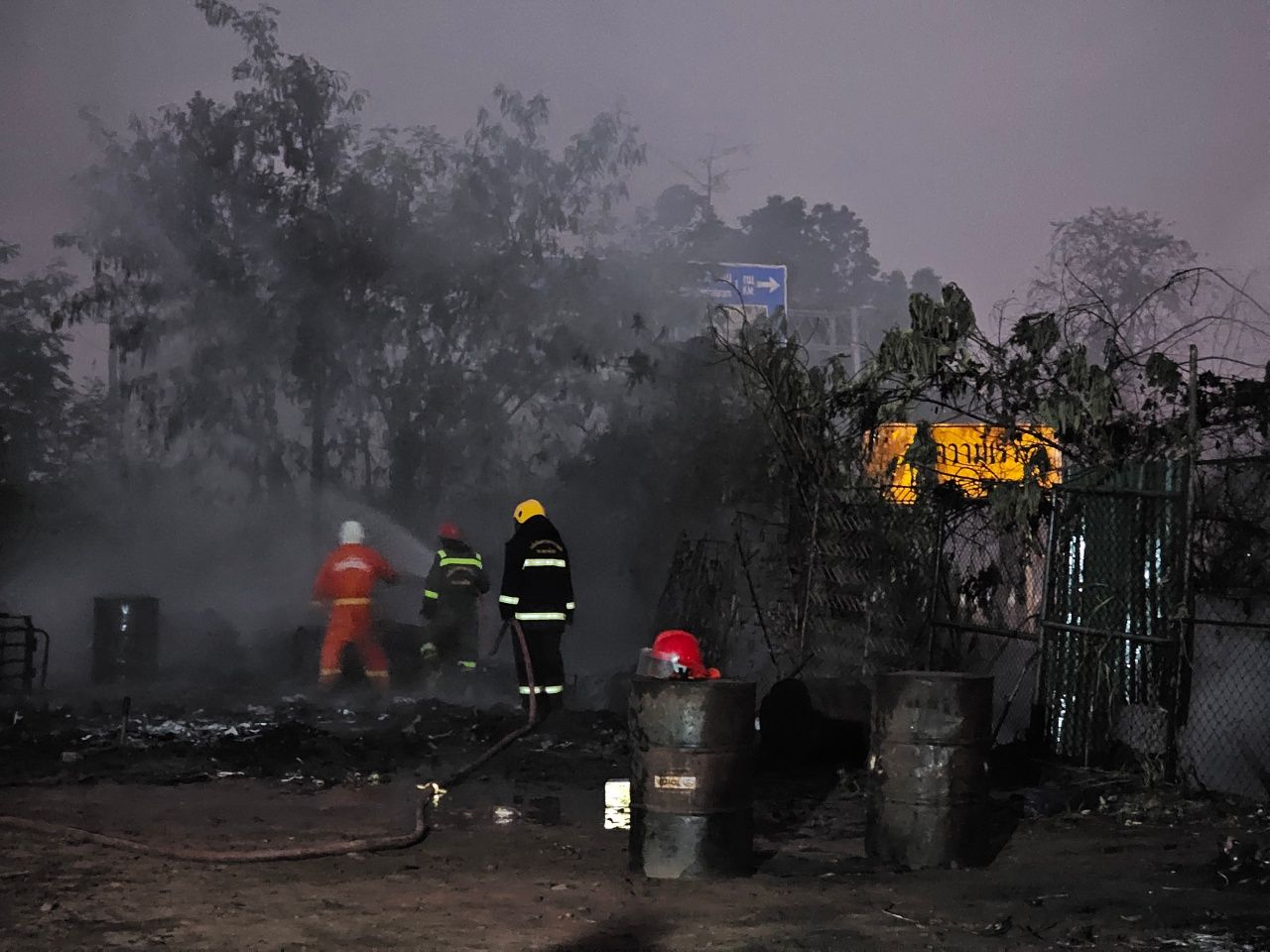 ที่เกิดเหตุอยู่ริมถนนสายเอเชีย 41 ขาล่องใต้ พบไฟกำลังลุกอยู่ริมถนน ลุกลามไหม้โรงเก็บขยะที่พร้อมจะนำส่งขายหมดเกลี้ยง เป็นร้านรับซื้อของเก่าร้านขยะรีไซเคิล