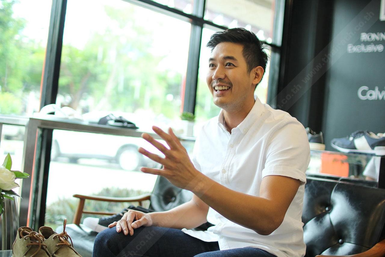 ร้านอาหาร แล้วก็มามอเตอร์ไซค์ ผมชอบเล่นฟิตเนสแล้วก็ไปขอหยอดนิดนึงไปขอเป็นหุ้นส่วนที่วิภาวดี 61 สุดท้ายก็มาเป็นธุรกิจแฟชั่น ด้วยความที่เราได้คลุกคลีกับวงการแฟชั่น เราก็มีความคิดแล้วแหละว่าวันหนึ่งถ้าเรามีประสบการณ์มากพอ เรียนรู้มากพอ เราก็อยากทำ โดยที่มันเป็นตัวตนเราด้วยแล้วเป็นสิ่งที่เราชอบ เป็นคนชอบใส่รองเท้า โชคดีมากมีพาร์ตเนอร์เข้ามาชื่อรอนนี่ เข้ามาคุย เราเป็นเพื่อนกันในฟิตเนส ซึ่งเป็นธุรกิจของผมธุรกิจหนึ่ง ก็เลยคุยกันว่าผมอยากทำแบรนด์รองเท้า ผมชอบแบรนด์นี้ที่เป็น footwear มีคนเอาเข้ามายัง ถามเขา เพราะว่ารอนนี่มีธุรกิจนำเข้าอยูแล้ว พอเช็กโชคดียังไม่มีคนนำเข้า ผมว่ามันก็เข้ากับผมนะ ซึ่งมันมีตั้งแต่ sneakers ที่เป็นรองเท้าผ้าใบ จนไปถึงขั้นที่ดู Casual ขึ้นมาหน่อย