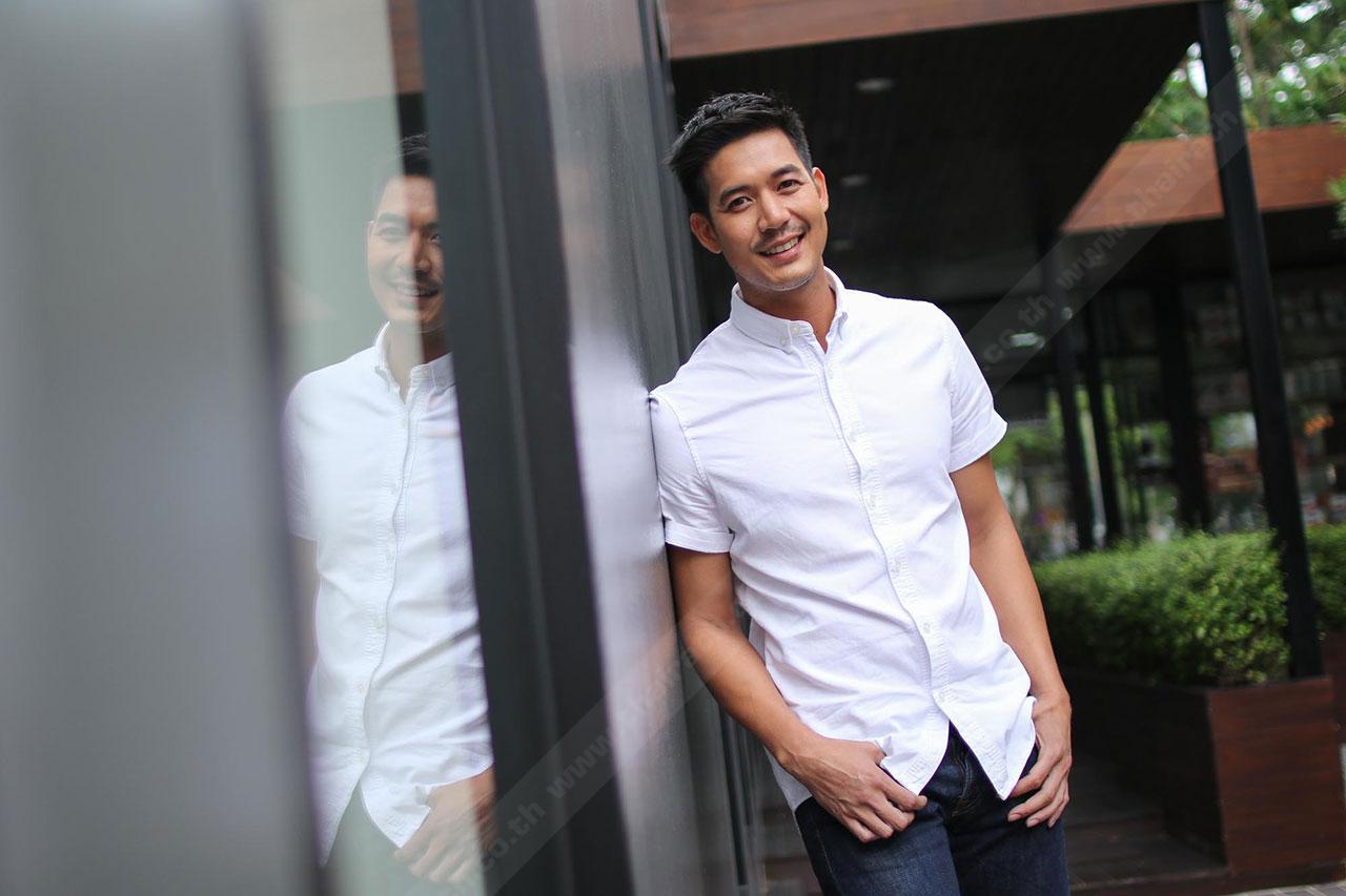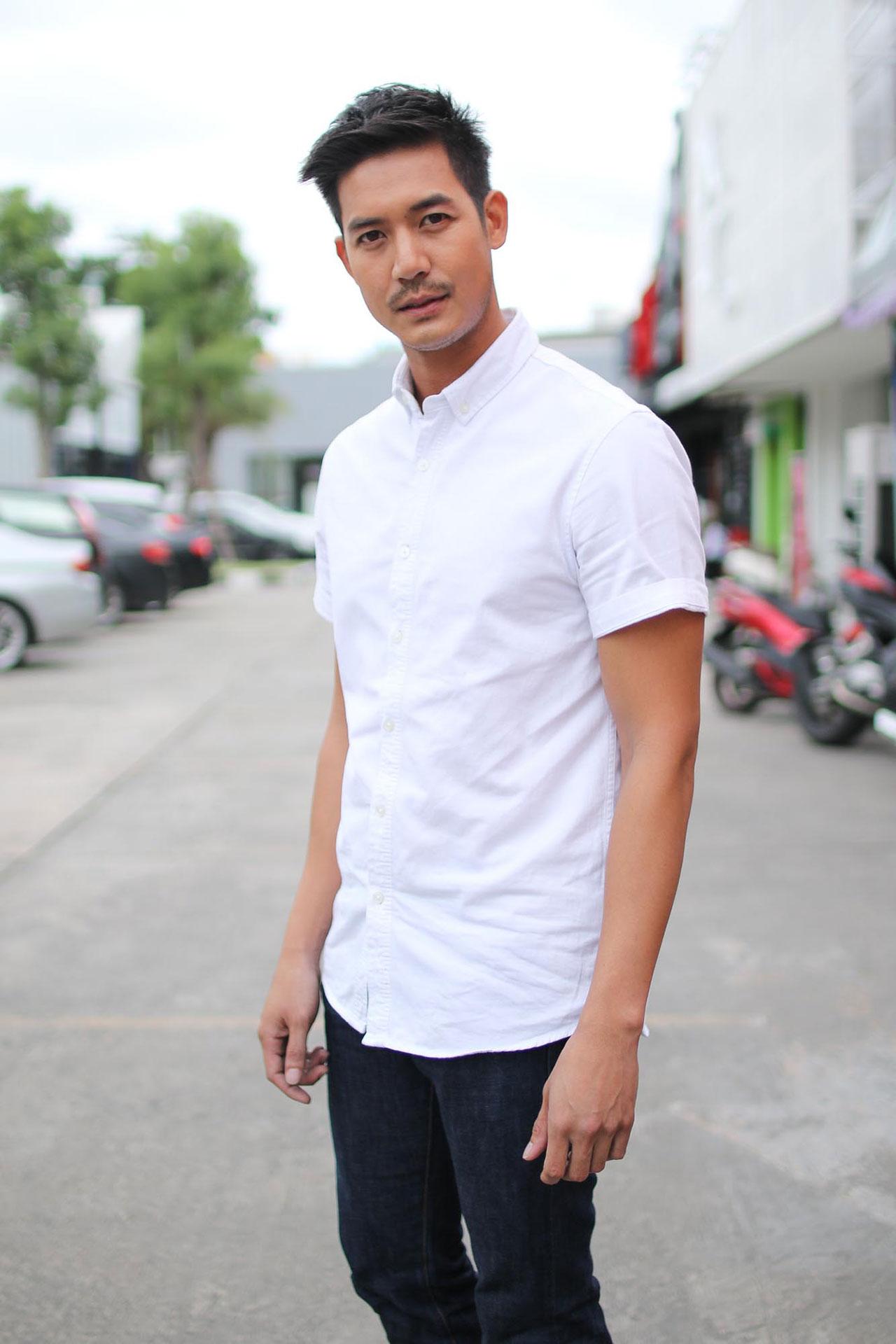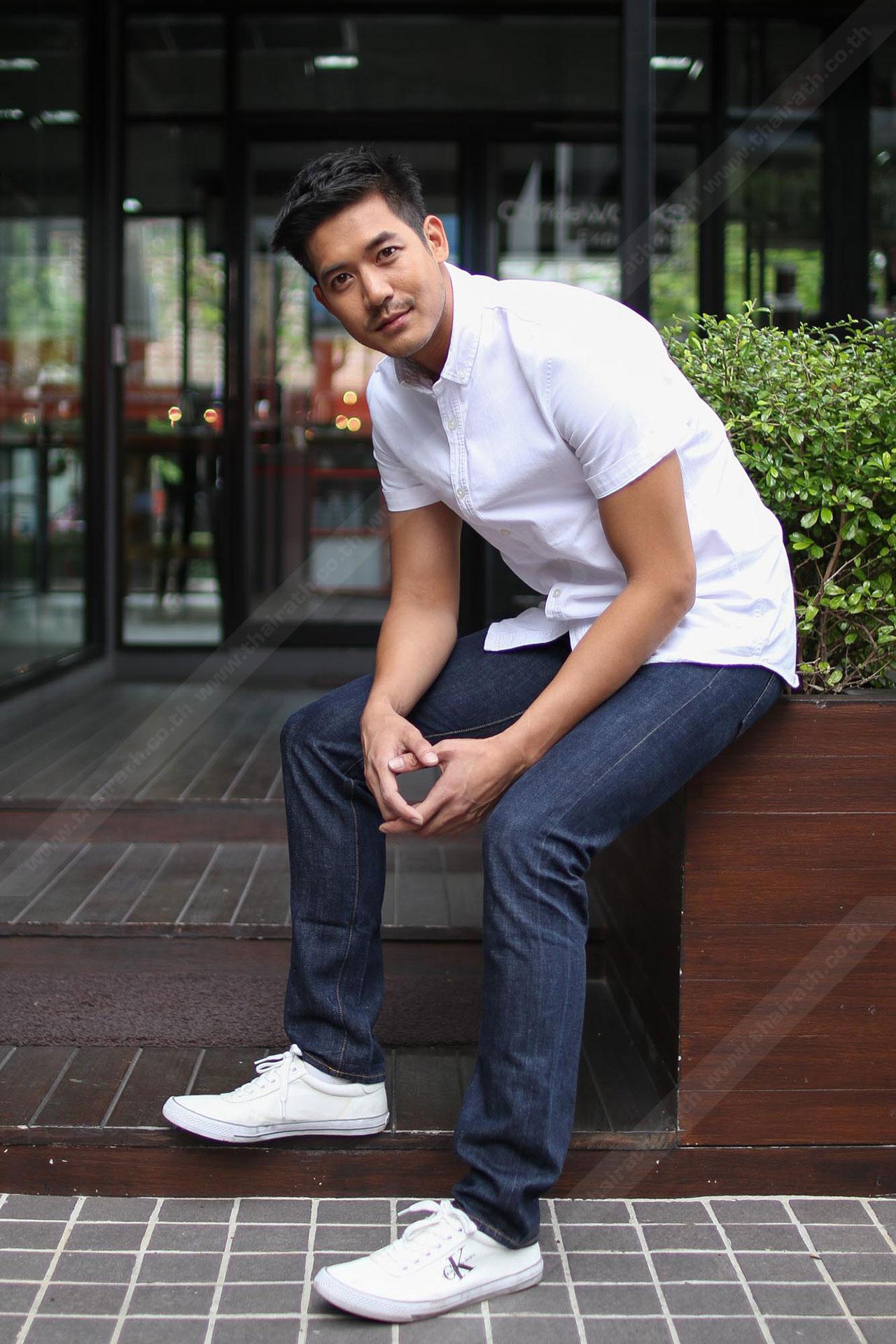 เสื้อเชิต-กางเกงยีนส์-รองเท้าผ้าใบขาว-แต่งกายด้วยองค์ประกอบง่ายธรรมดา แต่แปลกที่ว่าเราเห็นเขามาแต่ไกล,