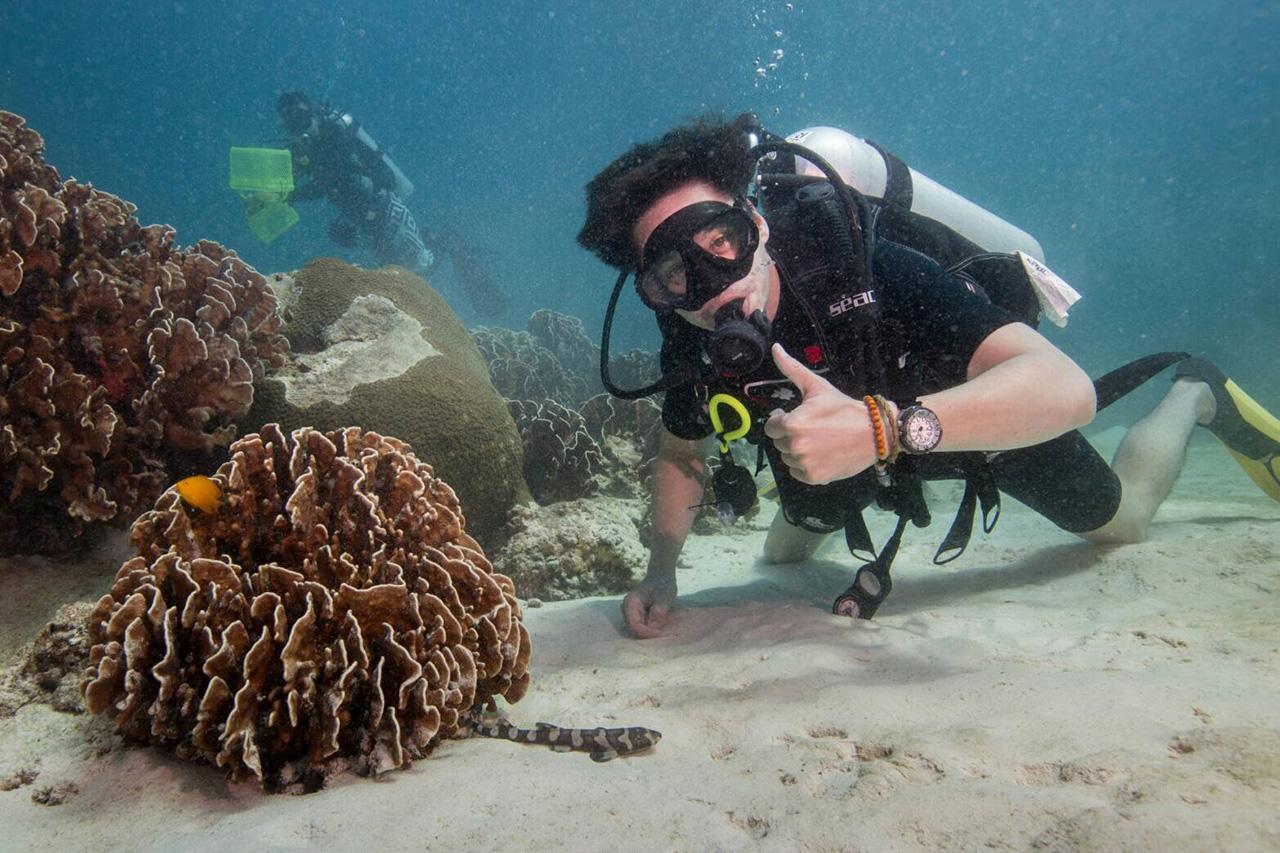 งานนี้พระเอกหนุ่ม อนันดา เอเวอริ่งแฮม ดี๊ด๊าสุดพลังที่จะได้ร่วมดำน้ำปล่อยปลาฉลามกบและปลูกปะการังอ่อน เพื่อคืนความสมดุลให้กับท้องทะเลไทยอีกครั้ง เมื่อเรือจอดนิ่ง อนันดาก็ไม่รอช้า ถอดเสื้อโดดลงน้ำทะเลอย่างด่วนจี๋ แหวกว่ายน้ำทะเลใสๆ อย่างสนุกสนาน ก่อนจะขึ้นเรือมาใส่ชุดดำน้ำเพื่อเตรียมตัวไปปล่อยปลาฉลามกบ และปลูกปะการังเทียม โดยมีนางเอกสาว ออม สุชาร์ ยืนให้กำลังใจอยู่บนฝั่ง