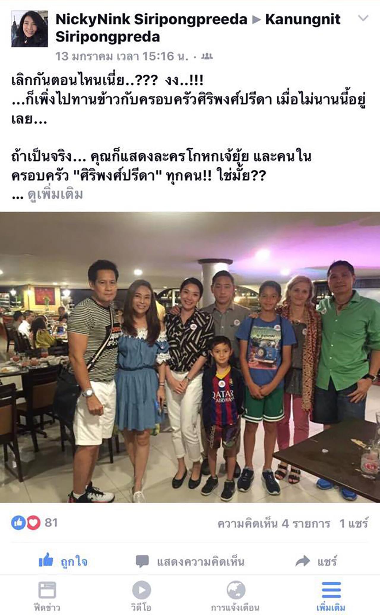 เมื่อได้รับจดหมายชี้แจงสถานะความสัมพันธ์ของทั้งคู่ ทางบันเทิงไทยรัฐออนไลน์ก็ได้สอบถามไปยังสาวยุ้ย คนึงนิตย์ ว่าจดหมายดังกล่าวเป็นของจริงใช่หรือไม่ ซึ่งสาวยุ้ยยอมรับว่าจดหมายดังกล่าวเป็นของจริง อีกทั้งยังส่งรูปฉลองวันครบรอบแต่งงาน รูปไปรับประทานอาหารร่วมกับครอบครัวศิริพงศ์ปรีดา รูปใส่บาตรในวันปีใหม่ที่ผ่านมา ที่อธิบายในจดหมายชี้แจงดังกล่าวให้กับทางไทยรัฐออนไลน์ อีกด้วย