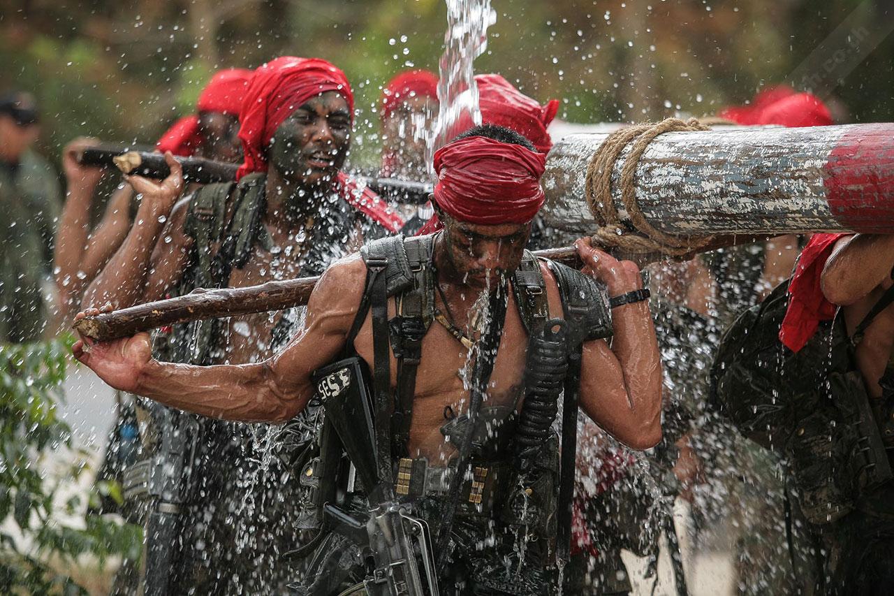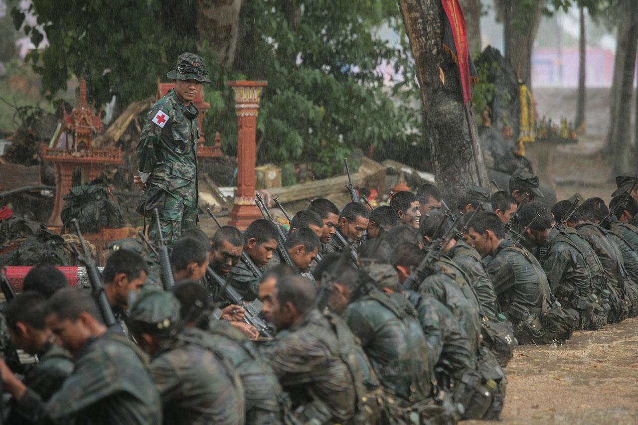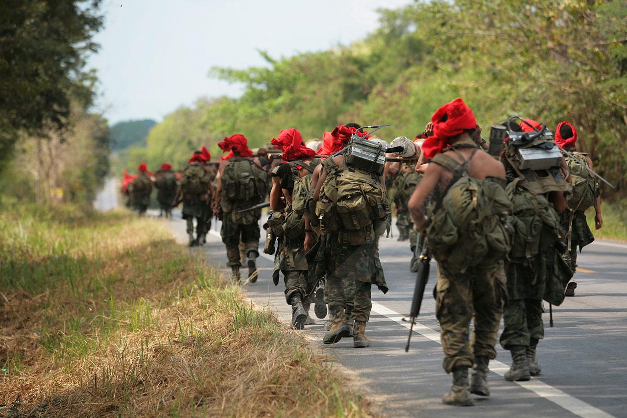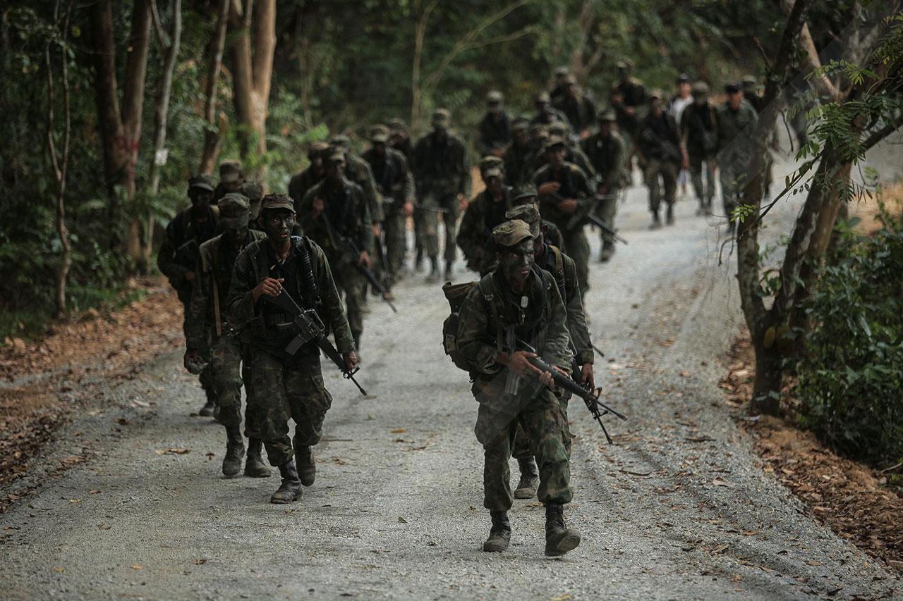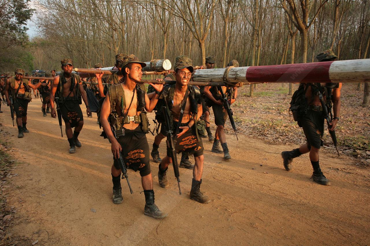 ระยะทาง 2 กม. กว่าๆ ที่เดินมายังไม่สิ้นสุดเพียงเท่านี้ พวกเขาจะต้องเดินเข้าป่าข้างทางอีกรอบ โดยระหว่างที่เดินอยู่ในป่าร่างกายแทบจะทรุดอยู่ตลอดเวลา แต่แล้วจู่ๆ เสียงระเบิดทีเอ็นทีดังสนั่น ด้วยสัญชาตินักรบที่มีอยู่ในตัว พวกเขารีบหมอบโดยพลัน ก่อนยิงสวนข้าศึกที่อยู่ข้างทางจนหนีเปิดเปิงไปกันหมด นับว่าการฝึกที่ผ่านมาทำให้พวกเขามีสติสามารถรับมือกับศัตรูที่อยู่รอบตัวได้ แม้ว่าสภาพร่างกายแทบจะล้มทั้งยืนก็ตาม
