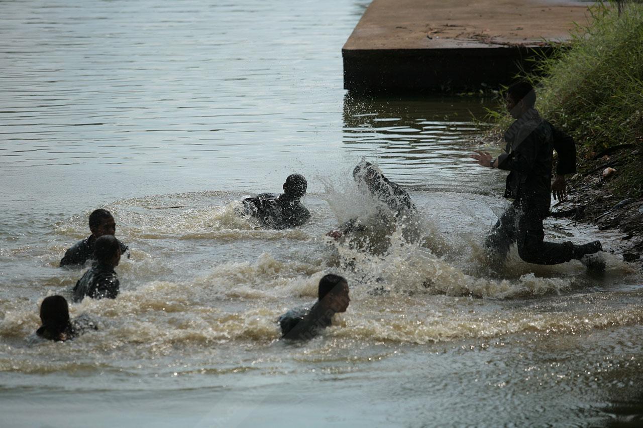 พักกันได้ไม่นาน ต้องออกเดินทางต่ออีกครั้ง โดยมีจุดหมายของค่ำคืนนี้อยู่ที่วัดป่าปิยมิตร เหล่านักรบเดินทางผ่านคลองข้างทาง ครูฝึกอนุญาตให้นักเรียนกระโดดน้ำให้ชุ่มฉ่ำอีกครั้ง ตู้มมม ตู้มมม ตู้มมม!!! นักเรียนรีคอนแต่ละชุดผลัดกันกระโดดลงน้ำจนสะใจ จากนั้นก็ตั้งแถวเตรียมเดินทางต่อไป