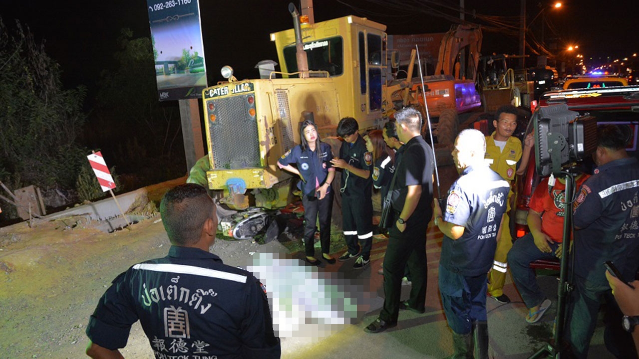 เมื่อเวลา 00.30 น. วันที่ 18 มี.ค. ร.ต.อ.สวิช สืบเพ็ง รอง สว.(สอบสวน) สภ.ปากเกร็ด จ.นนทบุรี รับแจ้งเหตุรถจักรยานยนต์ชนรถเกรดเดอร์สร้างทางมีผู้เสียชีวิต บริเวณใกล้โรงเรียนอัมพรไพศาล ฝั่งมุ่งหน้าแยกสวนสมเด็จฯ ถนนติวานนท์ ต.บ้านใหม่ ไปสอบสวนพร้อมด้วย พ.ต.ท.ยศวิน เอี่ยมพุ่ม รอง สว.(สอบสวน) สภ.ปากเกร็ด แพทย์สถาบันนิติวิทยาศาสตร์และเจ้าหน้าที่กู้ภัยมูลนิธิป่อเต็กตึ๊ง
