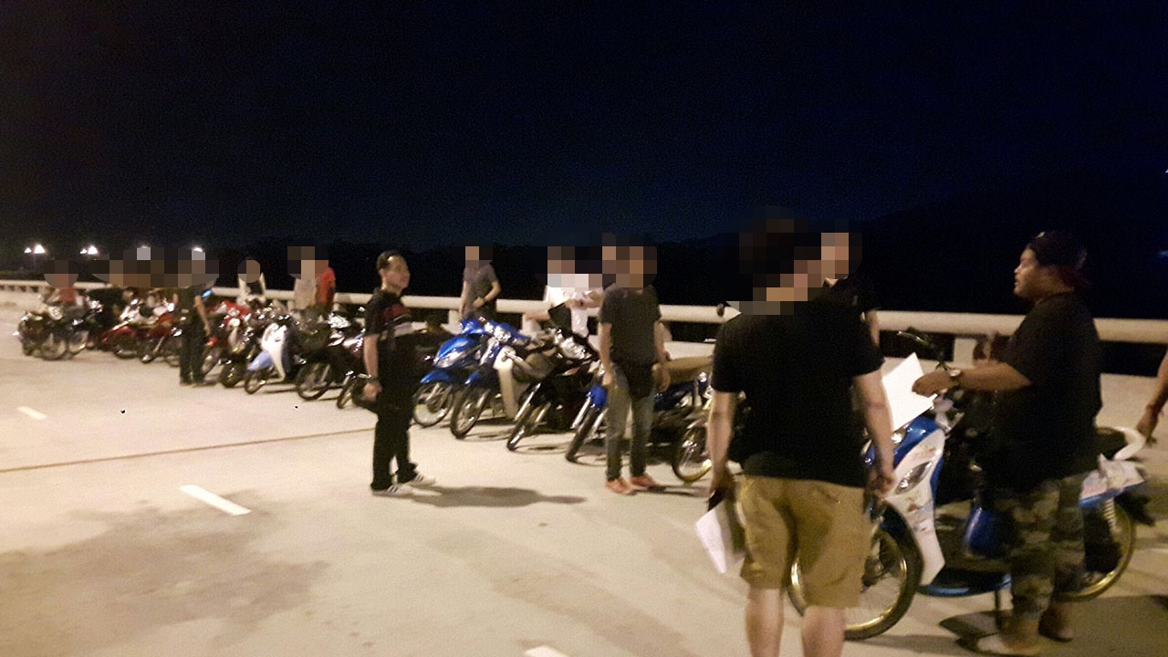 ผกก.สภ.เมืองชลบุรี พร้อมกำลัง 20 นาย นำรถยนต์ปิดหัวท้ายถนนสะพาน จับเด็กแว้น 30 คน สร้างความเดือดร้อนชาวบ้านยามค่ำคืน ยึดรถ 30 คันตรวจสอบ
