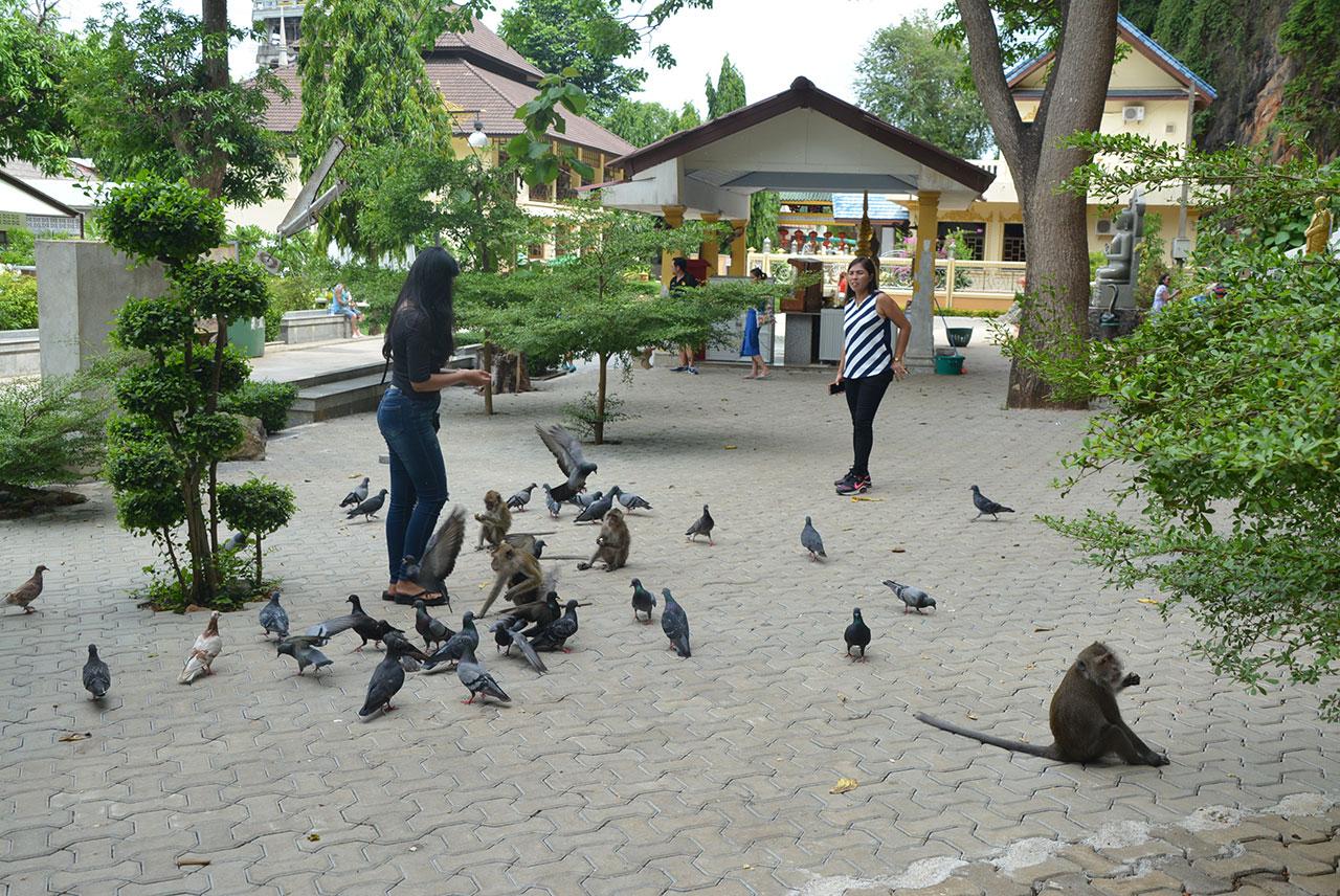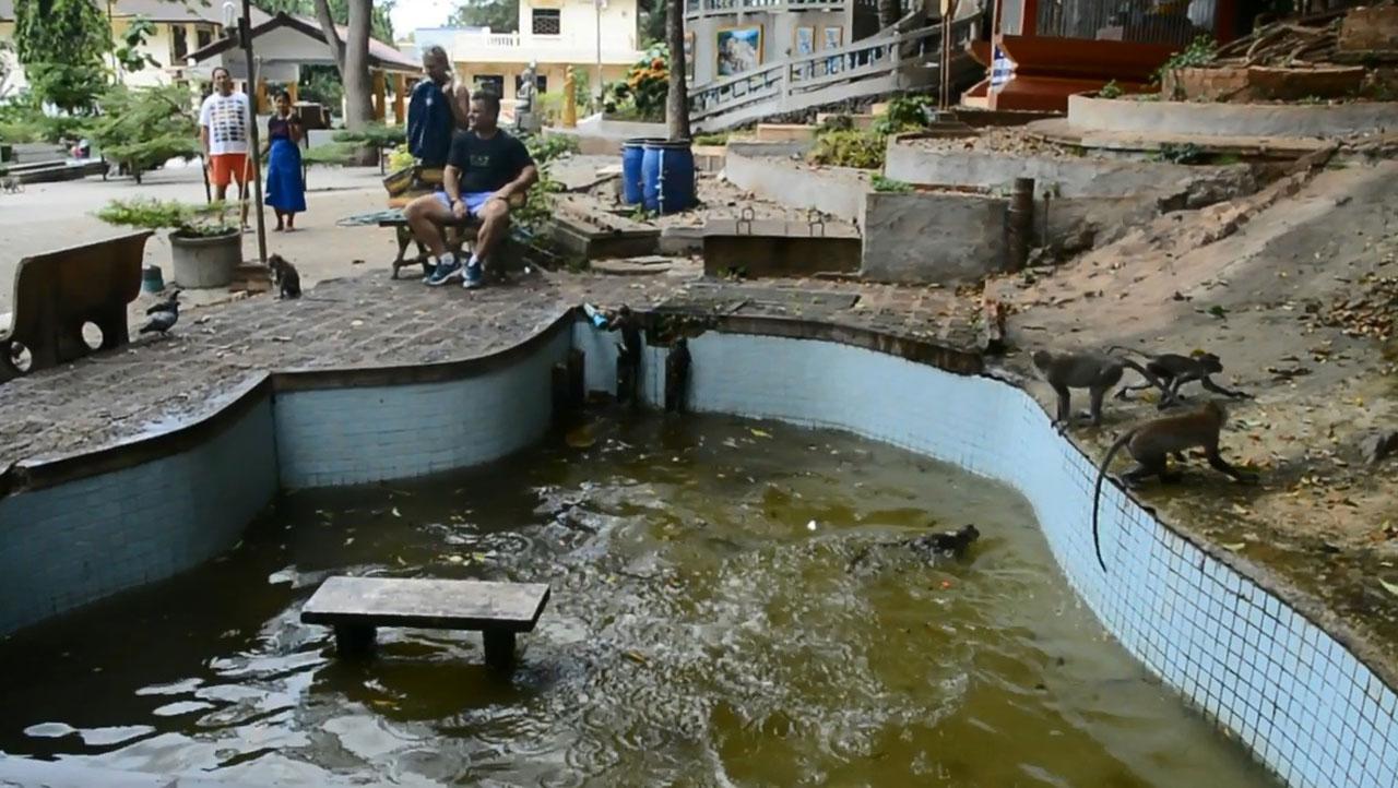 ด้านนายจำรัส ศรสุวรรณ อายุ 42 ปี เจ้าหน้าที่ดูแลความเรียบร้อยของวัด เผยว่า ที่ผ่านมาลิงได้ลงมาขออาหารจากนักท่องเที่ยวเป็นประจำ ซึ่งทางวัดจัดมุมจำหน่ายอาหารลิงไว้บริการนักท่องเที่ยว ส่วนสระน้ำจุดดังกล่าว เป็นสระน้ำที่ทางวัดสร้างขึ้นรับน้ำจากน้ำตกจำลองไหลจากภูเขา แต่ช่วงนี้มอเตอร์สูบน้ำเสีย อยู่ระหว่างรอซ่อมแซม จึงปล่อยว่าง แต่ยังมีน้ำไว้ตลอดเวลาเพื่อให้ฝูงลิงภายในวัดได้ดื่มกิน แต่มาช่วงนี้อากาศร้อนจัด ลิงหลายตัวจึงลงไปอาบน้ำ ดำผุดดำว่ายคลายร้อน หยอกล้อกันอย่างสนุกสนาน ซึ่งก็สร้างความสนใจแก่นักท่องเที่ยวได้เป็นอย่างดี แต่อย่างไรก็ตามฝากเตือนนักท่องเที่ยว ห้ามหยอกล้อลิงโดยเด็ดขาด ยิ่งประกอบกับช่วงนี้อากาศร้อนอบอ้าว ลิงอาจจะหงุดหงิดง่ายกว่าปกติ.