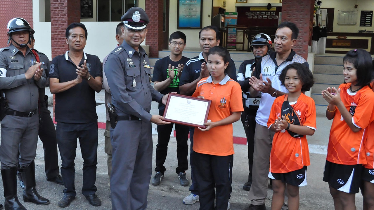 ชื่นชมนักกีฬาเยาวชนตะกร้อลอดห่วงหญิง จาก จ.ศรีสะเกษ มาร่วมแข่งขันกีฬาเยาวชนแห่งชาติ ชุมพร-ระนองเกมส์ เดินเที่ยวถนนคนเดินเก็บกระเป๋าเงินได้ ส่งให้ตำรวจตามจนเจอเจ้าของ ขอบคุณและมอบเงินเป็นสินน้ำใจ ส่วน ผกก.มอบเกียรติบัตรยกย่อง นอกจากเป็นนักกีฬาแล้ว ยังมีจิตใจที่ดีงามด้วย...