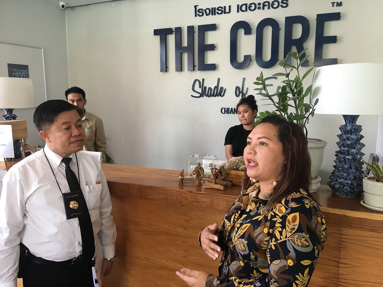 น.ส.ฟ้ารุ่ง โคนารีอุส อายุ 41 ปี ผจก.รร.เดอะคอร์ เผยว่า โรงแรมดังกล่าวเป็นของบริษัทขอนแก่น โฟร์พีเทียร์ จำกัด เป็นเจ้าของ ขณะนี้ยังไม่ได้เปิดให้บริการลูกค้า แต่เป็นการเปิดทดลองระบบและความพร้อมของพนักงานเท่านั้น ทางเจ้าหน้าที่ได้ตรวจสอบหลักฐานของแขกเข้าพัก ปรากฏว่าไม่พบมีการเปิดรับแขกเข้าพักแต่อย่างใด