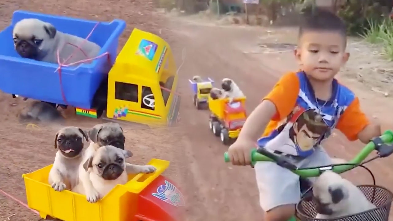 เมื่อวันที่ 25 มี.ค. ผู้สื่อข่าวรายงานว่า ‘เดลี เมล’ สื่อชื่อดังแห่งเกาะอังกฤษ ได้นำเสนอข่าวความน่ารักของเด็กน้อยชาวไทยคนหนึ่ง หลังมีคลิปขณะปั่นจักรยานคันจิ๋วพ่วงกับรถบรรทุกของเล่น 2 คัน โดยขบวนคันดังกล่าวประกอบไปด้วยสุนัขพันธุ์ปั๊กถึง 5 ตัว แต่ไฮไลต์อยู่ที่รถบรรทุกคันแรกซึ่งอัดแน่นลูกสุนัขถึง 3 ตัว ยืนเบียดเสียดกันอย่างน่ารัก