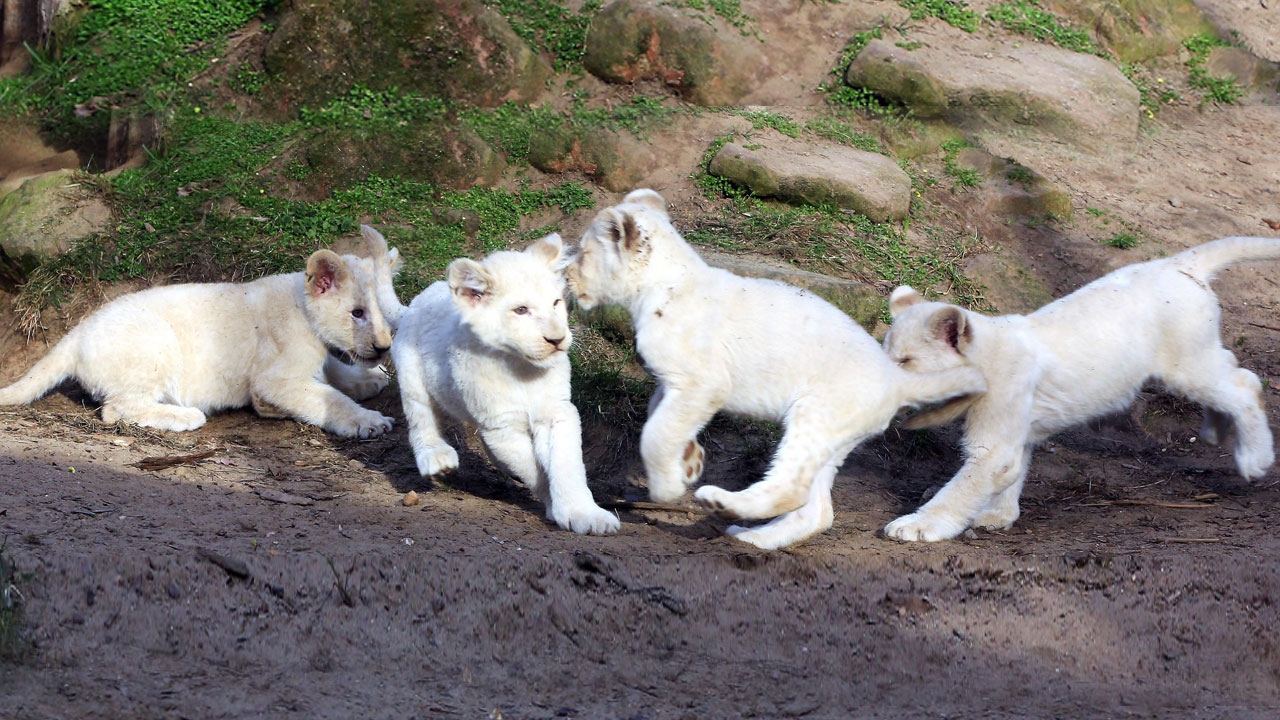 ลูกสิงโตขาว 4 พี่น้องที่เป็นตัวผู้ 3 ตัว และตัวเมีย 1 ตัว ทั้งหมดเกิดเมื่อช่วงคริสต์มาสเมื่อปีที่แล้ว ตอนนี้เติบโตและซุกซนมาก ปกติเจ้าสิงโตเด็กกลุ่มนี้จะเฝ้าคลอเคลียอยู่ไม่ห่างจากพ่อและแม่โดยจะอิงแอบอยู่กับแม่หรือไต่หลังแยกเขี้ยวคำรามใส่นักท่องเที่ยวแลดูขบขัน และเป็นขวัญใจของสวนสัตว์แมกเดบวร์ก ตั้งอยู่ที่เมืองทางตะวันออกเฉียงเหนือของประเทศเยอรมนี.