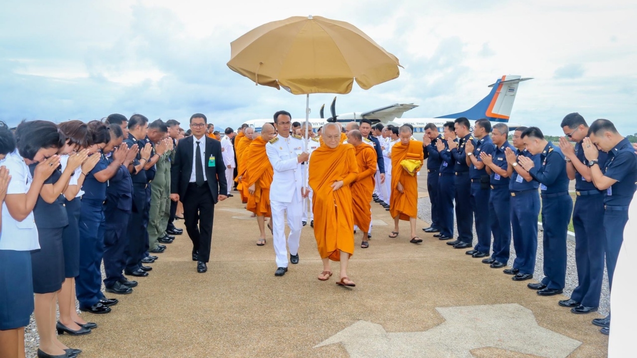 สมเด็จพระอริยวงศาคตญาณ สมเด็จพระสังฆราช สกลมหาสังฆปริณายก เสด็จถึง กองบิน 7 จ.สุราษฎร์ธานี ด้วยเครื่องบินของกองทัพอากาศ เพื่อประทานสัญญาบัตร พัดยศ และผ้าไตร แก่พระสงฆ์ในเขตปกครองคณะสงฆ์หนใต้ ณ วัดพัฒนาราม โดยมีปชช.นับหมื่นรอรับเสด็จ...