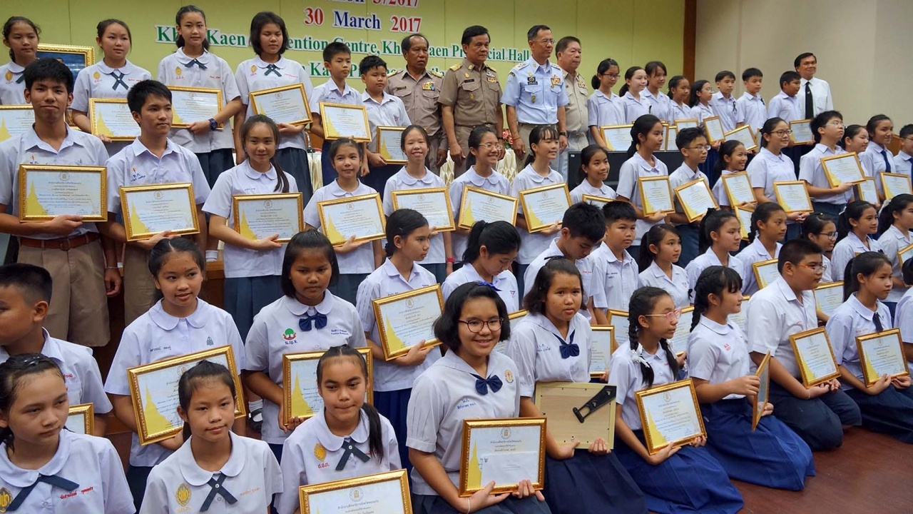 เมื่อเวลา 11.00 น. วันที่ 30 มี.ค.2560 ที่ห้องประชุมศาลากลาง จ.ขอนแก่น นายพงษ์ศักดิ์ ปรีชาวิทย์ ผวจ.ขอนแก่น เป็นประธานในการมอบเกียรติบัตรและทุนการศึกษาให้กับนักเรียนที่มีผลการทดสอบทางการศึกษาระดับชาติขั้นพื้นฐาน หรือ O-NET ประจำปีการศึกษา 2559 ซึ่งมีนักเรียนจากทั้ง 26 อำเภอของ จ.ขอนแก่น ที่มีผลคะแนนการสอบ 100 คะแนนเต็ม เข้ารับมอบเกียรติบัตรเชิดชูเกียรติคนดีศรีขอนแก่น ประจำปีการศึกษาดังกล่าวรวมทั้งหมด 82 คน