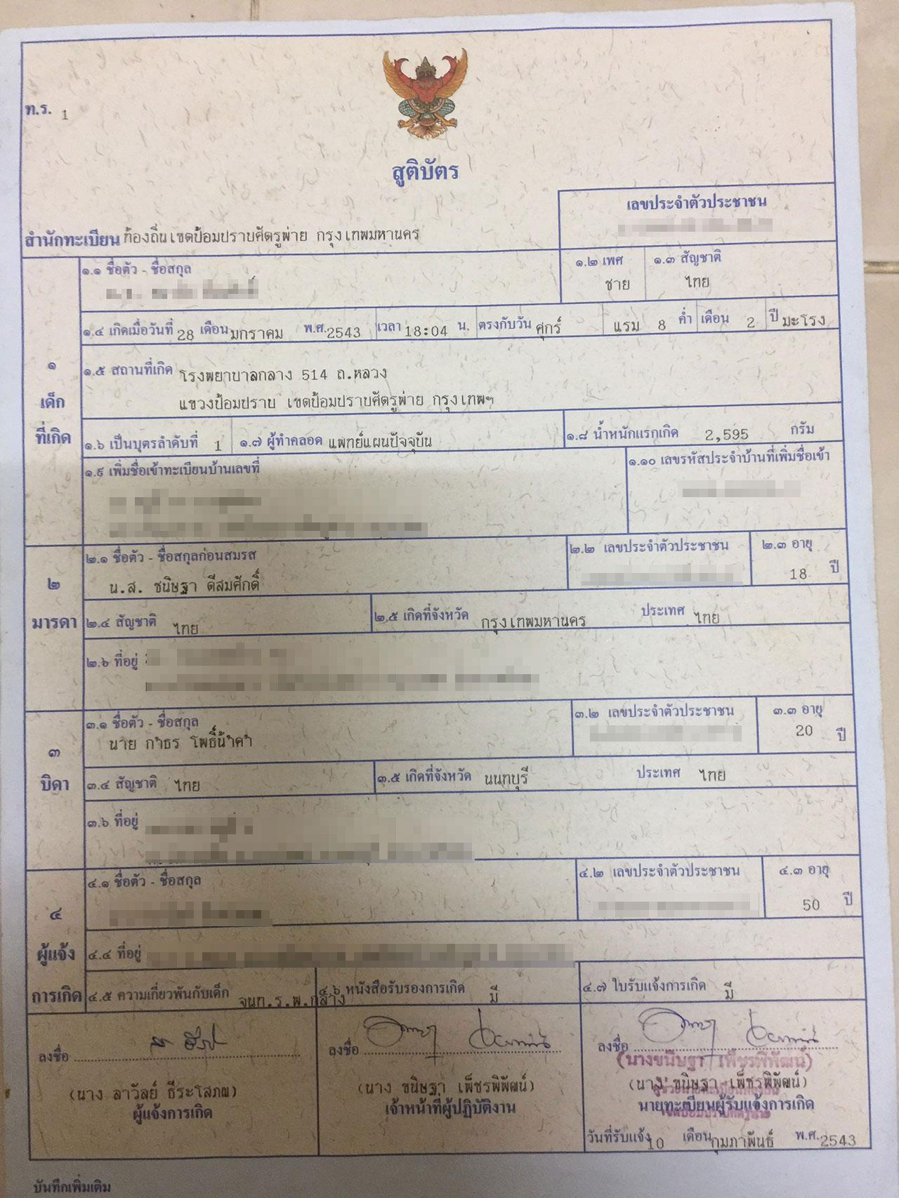 ล่าสุด "นางชนิษฐา" ได้เปิดเผยกับ "ไทยรัฐ ออนไลน์" พร้อมนำสูติบัตรของนายบี (นามสมมติ) ลูกชายมาให้ผู้สื่อข่าวดู โดยด.ช.บี เกิดวันที่ 28 มกราคม 2543 สถานที่เกิดโรงพยาบาลกลาง 514 ถ.หลวง แขวงป้อมปราบ เขตป้อมปราบศัตรูพ่าย กรุงเทพฯ ชื่อมารดาคือ นางชนิษฐา ชื่อบิดาคือนายกำธร โพธิ์น้ำคำ