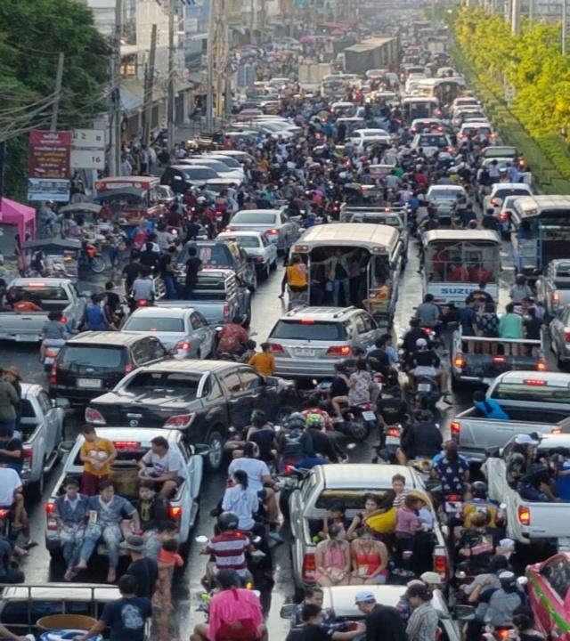 เปิดงานสงกรานต์พระประแดง ขบวนแห่นางสงกรานต์และขบวนรถบุปผชาติสวยตระการตา พร้อมทั้งพิธีเก่าๆ ที่ยังรักษาประเพณีของชาวรามัญ ขณะที่ คนออกมาเล่นน้ำริมถนนสุขสวัสดิ์ และถนนปู่เจ้าสมิงพราย กันจำนวนมาก ทำให้การจราจรติดขัดยาว...