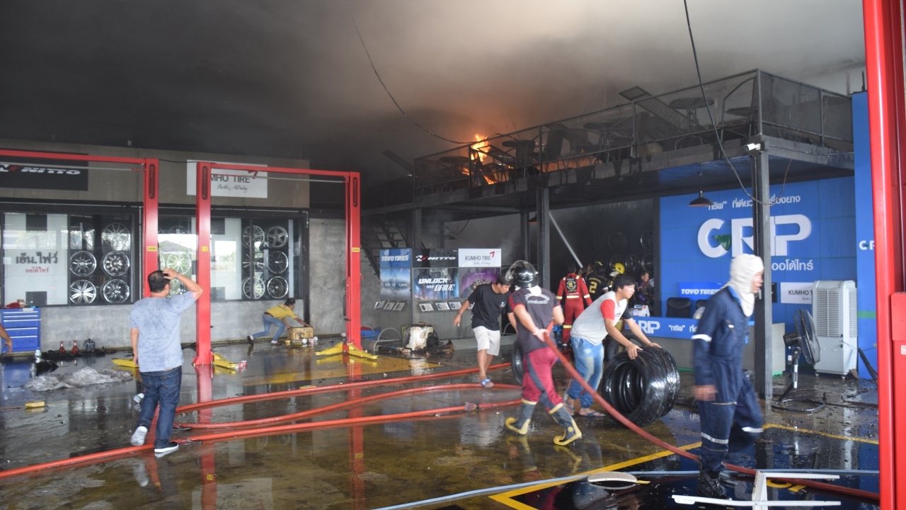 เกิดเหตุเพลิงไหม้ร้านขายยางรถยนต์ จ.ชลบุรี เผาวอด เครื่องไฮโดรลิค เครื่องมือไฟฟ้าล้อแม็กซ์ ยางรถ มูลค่าความเสียหายสูงถึง 8 ล้านบาท ตร.คาด ไฟฟ้าลัดวงจร