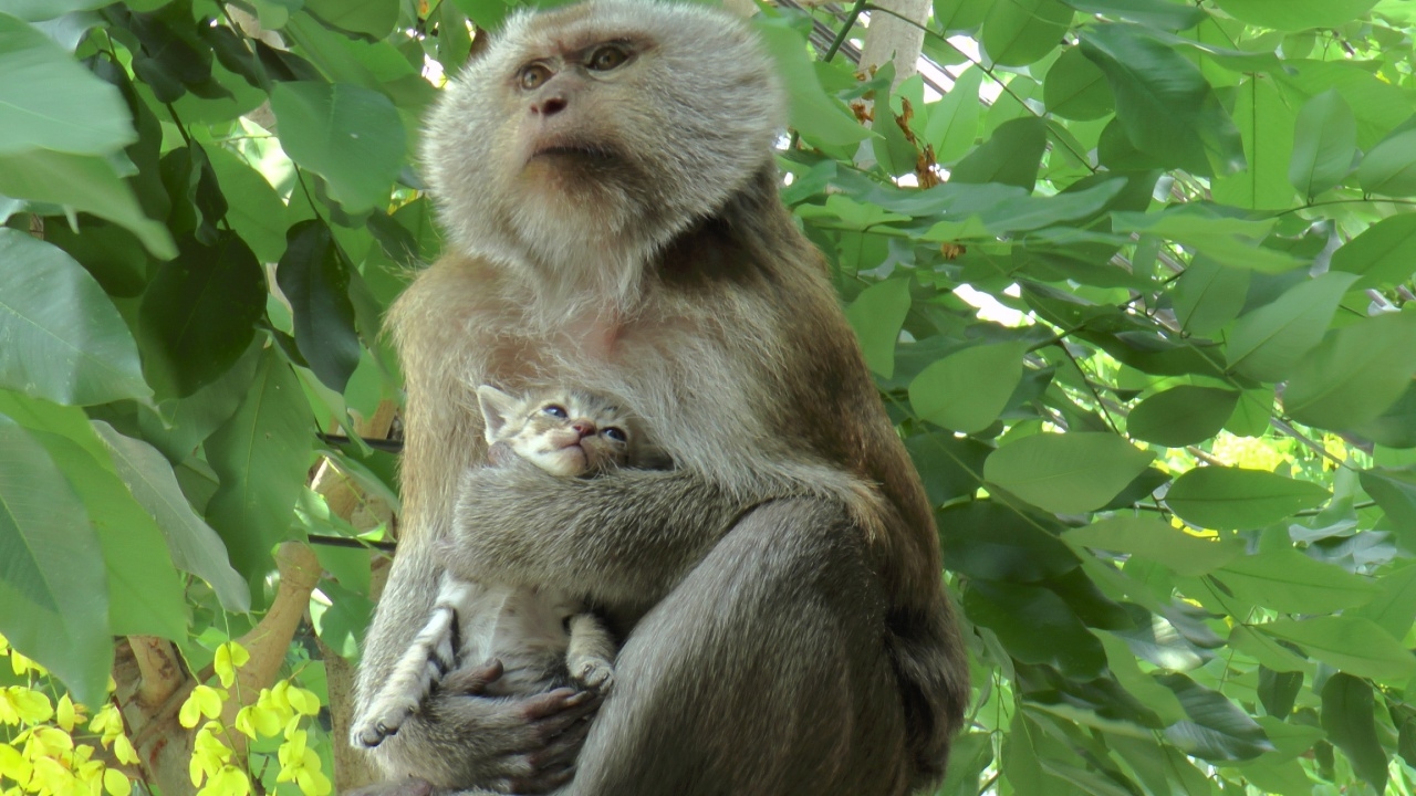 ขณะที่พระมหาวัชรินทร์ วชิระญาโน เจ้าอาวาสบอกว่า มันชอบมาขโมยลูกแมวไปเลี้ยงครั้งละวันสองวัน ทางเราก็กลัวแมวจะตายต้องใช้เณรไล่ พอเผลอแป๊บเดียวมาเอาไปอีกแล้ว เผลอก็หิ้วมาอีกแล้วมาเอาไปทีไรก็จะเอาตัวเดิม ลูกแมวมี 5 ตัว จะเลือกไปตัวเดียวตัวเดิมก็ไม่รู้ว่าเพราะอะไร