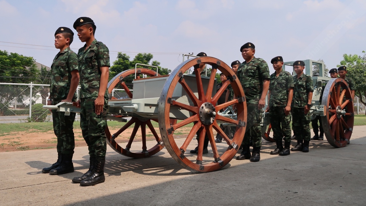 พ.อ.นพรัตน์ นาคจันทึก ผู้อำนวยการกองโรงงานซ่อมสร้างยุทโธปกรณ์สายสรรพาวุธ ศูนย์ซ่อมสร้างสิ่งอุปกรณ์สายสรรพาวุธ กรมสรรพาวุธทหารบก หรือ กรซย.ศซส.สพ.ทบ. ตรวจความคืบหน้าการจัดสร้างราชรถปืนใหญ่ ที่จะใช้ในพระราชพิธีถวายพระเพลิงพระบรมศพพระบาทสมเด็จพระปรมินทรมหาภูมิพลอดุลยเดช ซึ่งเป็นองค์จริง และองค์สำรอง ขณะนี้ จัดทำโครงสร้างและระบบขับเคลื่อนคืบหน้าไปมากกว่าร้อยละ 95