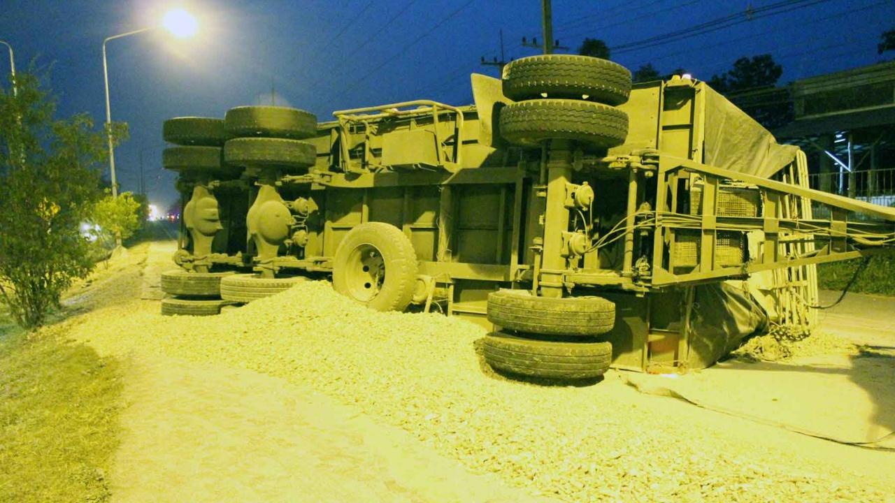 ที่เกิดเหตุเป็นทางตรงก่อนเข้าเขตอำเภอเมืองแพร่ ทางหลวงหมายเลข 101 พบรถสิบล้อพ่วงยี่ห้อฮีโน่ สีขาว หมายเลขทะเบียน ตัวรถ70-3612, ตัวพ่วง 70-5318 เชียงราย บรรทุกมันสำปะหลังมาเต็มทั้งสองคัน ทั้งตัวแม่และพ่วงตัวลูกเทกระจาดนอนตะแคง จนทำให้มันสำปะหลังตกเกลื่อนพื้นปิดเส้นทางจราจรขาล่องทั้งหมด รถยนต์ไม่สามารถสัญจรหลีกไปได้ ทำให้รถติดยาวหลายกิโลเมตร ไปจนถึงบริเวณหน้าสถานีขนส่งจังหวัดแพร่ เจ้าหน้าที่ตำรวจต้องเคลียร์เส้นทางโดยให้รถวิ่งเบี่ยงไปอีกเลนเพื่อระบายรถ เพราะเป็นเส้นทางหลัก