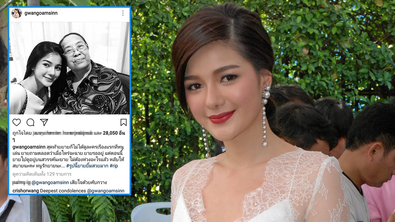 โดยสาวกวางได้โพสต์รูปคู่กับคุณยายในไอจีส่วนตัว @gwangoamsinn พร้อมด้วยข้อความสุดเศร้าว่า “สุดท้ายยายก็ไม่ได้ดูละครเรื่องแรกที่หนูเล่น ยายถามตลอดว่าเมื่อไหร่จะฉาย ยายรออยู่ แต่ตอนนี้ยายไปดูอยู่บนสวรรค์นะยาย ไม่ต้องห่วงอะไรแล้ว หลับให้สบายนะคะ หนูรักยายนะ... #รูปนี้ยายยิ้มสวยมาก #rip”