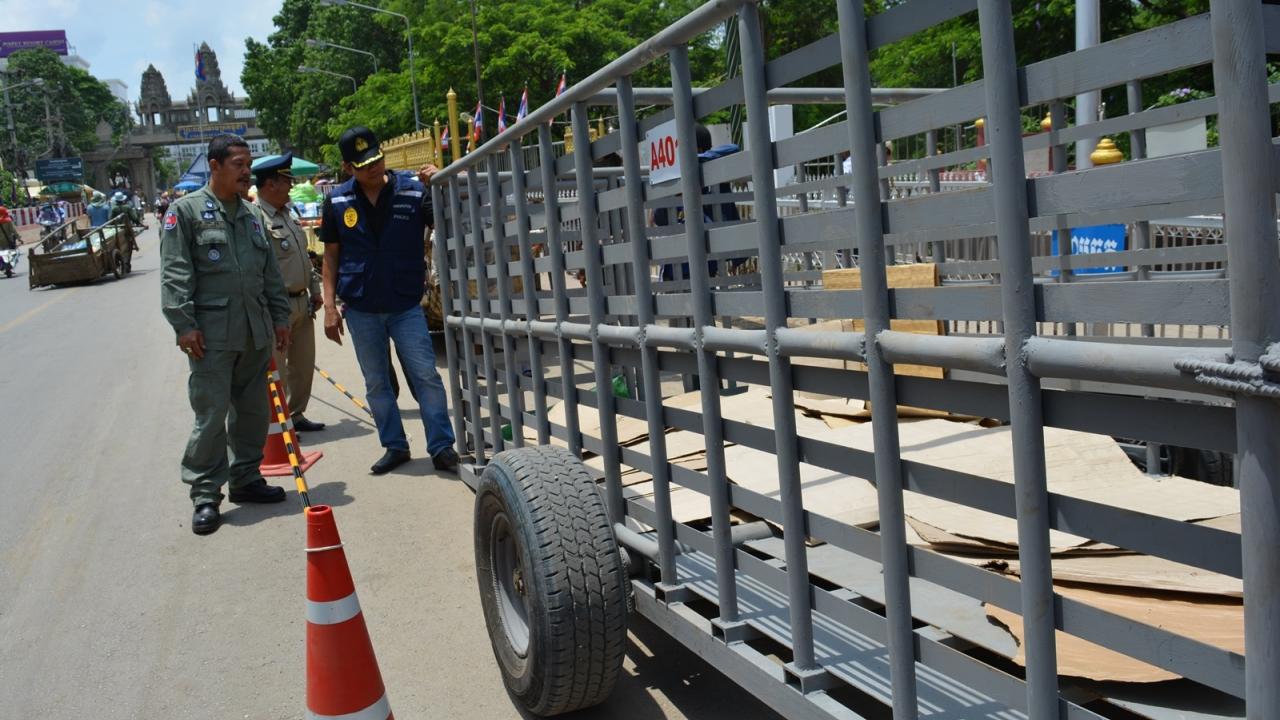 จากนั้น พ.ต.ท.เบญจพล จึงได้ประสานไปยัง พล.ต.ต.ซึม สมอาด หัวหน้าด่าน ตม.ปอยเปต ประเทศกัมพูชา ส่ง จนท.ผู้ควบคุมด่าน ตม.ปอยเปต มาร่วมหารือที่บริเวณหน้าด่านพรมแดนอรัญประเทศ จ.สระแก้ว โดยฝ่ายไทยได้ขอความร่วมมือฝ่ายกัมพูชาให้แจ้งเตือนผู้ประกอบการรถเข็นล้อเลื่อนชาวกัมพูชาห้ามไม่ให้นำรถเข็นล้อเลื่อนที่ดัดแปลงจนใหญ่เกินขนาดเข้ามาบรรทุกสินค้าในประเทศไทย เนื่องจากเป็นสาเหตุทำให้การจราจรติดขัดและเป็นการละเมิดกฎหมายจราจรทางบกของไทย โดยร้องขอให้ จนท.ตม.ปอยเปต ของกัมพูชาประชาสัมพันธ์ให้ผู้ประกอบการชาวเขมรได้รับรู้โดยทั่วกัน และให้รีบปรับเปลี่ยนรถเข็นล้อเลื่อนขนาดใหญ่ทำให้เล็กลงเพื่อการขนส่งสินค้าให้คล่องตัว จะได้ไม่ทำให้การจราจรติดขัดบริเวณหน้าด่านพรมแดนอรัญประเทศ ซึ่งทางฝ่าย จนท.ตม.ปอยเปต ประเทศกัมพูชา ได้ให้ความร่วมมือและรับปากจะไปแจ้งเตือนผู้ประกอบการชาวกัมพูชาตามที่ ตม.ไทยเสนอแนะมา และขณะ จนท.กำลังหารือกันบริเวณหน้าด่านพรมแดนอรัญประเทศ จ.สระแก้ว ก็ได้พบกรรมกรชาวเขมรเข็นรถเข็นล้อเลื่อนขนาดใหญ่ที่ทำจากโครงเหล็ก มีแผงข้าง กว้างประมาณ 2.20 เมตร ยาว 5 เมตร โดยใช้ล้อรถยนต์ 6 ล้อมาเป็นล้อเลื่อน เข็นข้ามด่านพรมแดนอรัญประเทศ จากฝั่งปอยเปต ประเทศกัมพูชา เข้ามาในประเทศไทย จึงได้ร่วมกันตรวจสอบจากนั้น จนท.จึงร่วมกันแจ้งผู้ประกอบการชาวเขมรห้ามไม่ให้นำรถเข็นลากเลื่อนขนาดใหญ่เข้ามาในประเทศไทย ทำให้ผู้ประกอบการชาวเขมรต้องเข็นรถเข็นลากเลื่อนขนาดใหญ่กลับออกไปทันที