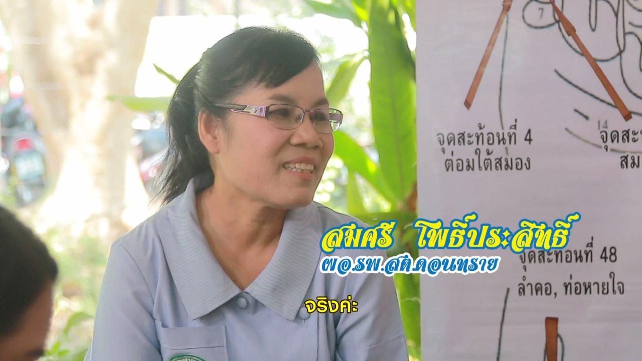 วันนี้ผมกำภูและคุณรัชนีย์มาพบกันกับคุณๆ อีกแล้วนะครับ เชื่อไหมคุณผู้อ่าน ว่าตอนที่เราสองคนได้ยินคุณ สมศรี โพธิ์ประสิทธ์ ผู้อำนวยการโรงพยาบาลส่งเสริมสุขภาพประจำตำบลดอนทราย เล่าย้อนอดีตถึงภาพการทำงานในช่วงไม่กี่ปีที่ผ่านมา เราสองคนนี่อึ้งไปเลย แถมต้องยกนิ้วกดไลค์ให้ผู้หญิงคนนี้ เพราะถือว่าเธอคนนี้เป็นคนที่จุดประกายเริ่มต้นทำให้คนในชุมชนหันมาสนใจปัญหาสุขภาพของชุมชนอย่างจริงจัง ประจวบเหมาะกับทางจังหวัดราชบุรี ที่เลือกเอาตำบลดอนทรายขึ้นมาเป็นจุดนำร่องในกิจกรรมนวดกดจุดสะท้อนเท้าเลิกบุหรี่ ซึ่งเป็นส่วนหนึ่งของโครงการ "3 ล้าน 3 ปี เลิกบุหรี่ทั่วไทย เทิดไท้องค์ราชัน"
