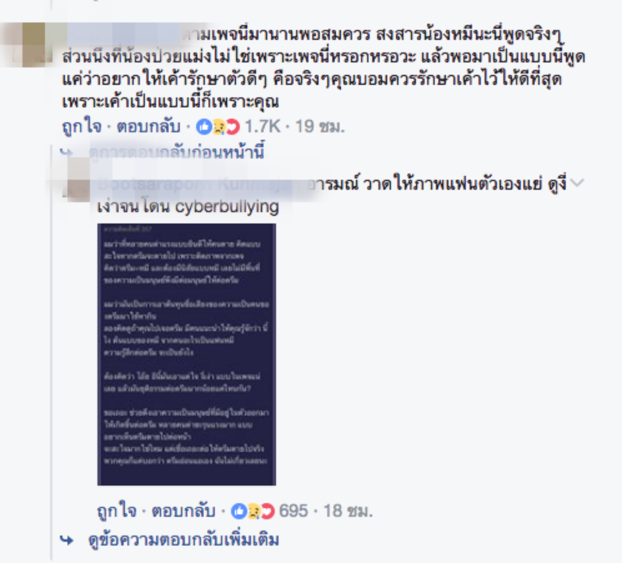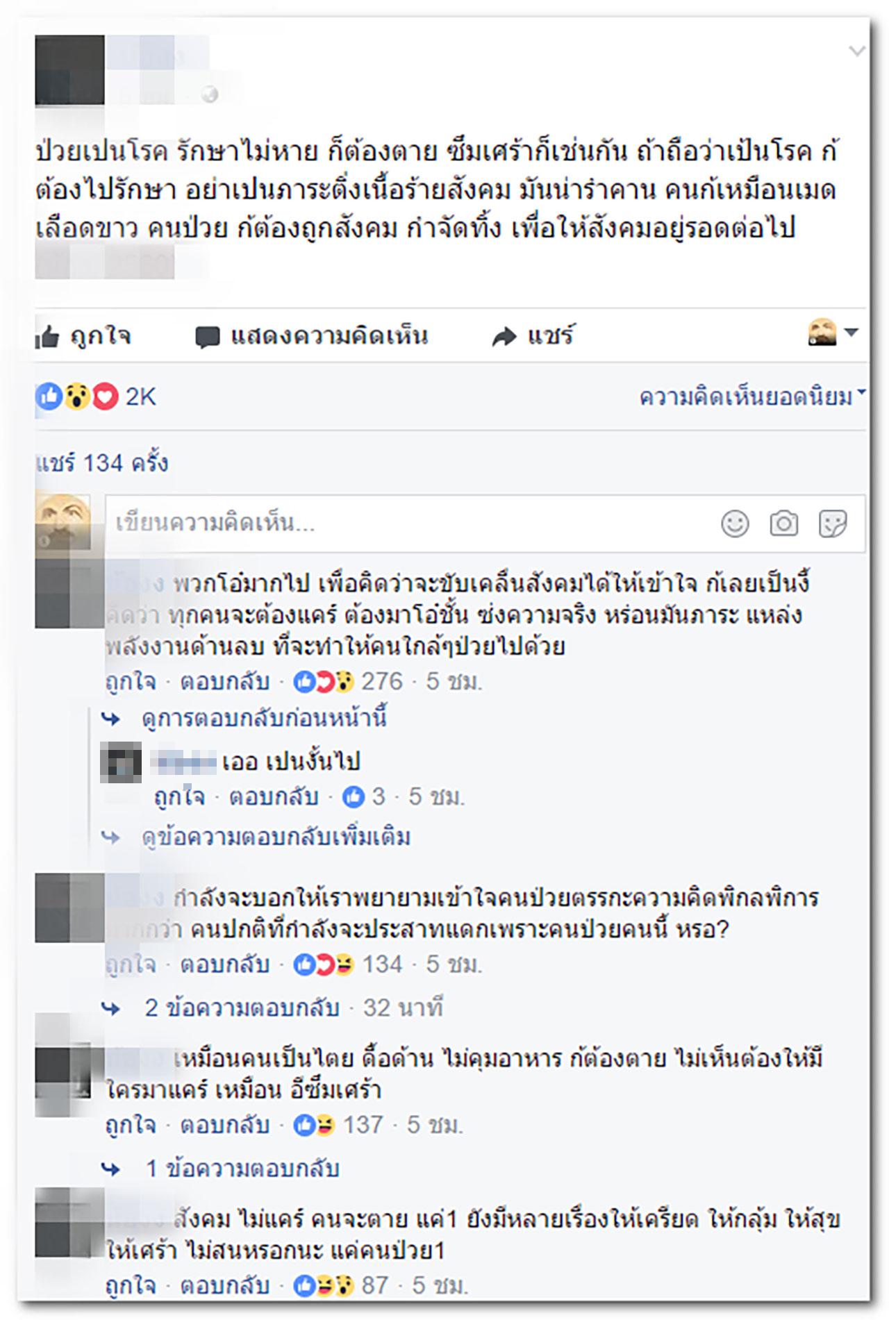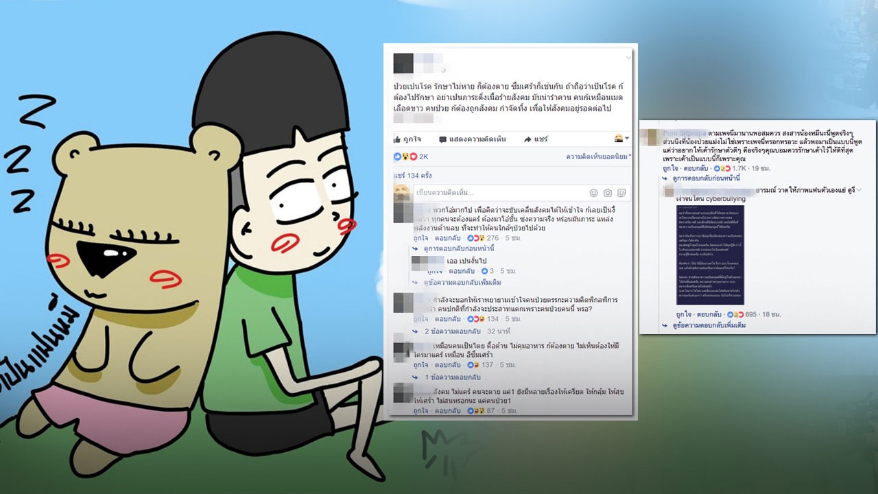 อย่างไรก็ตาม เมื่อทั้งสองได้อธิบายให้คนทั่วไปได้เข้าใจ กับมีอีกหนึ่งดราม่าเกิดขึ้น เมื่อเหล่าสมาชิกเฟซบุ๊กที่ติดตามเรื่องราวเหล่านี้ กลับให้ความเห็นในเชิงซ้ำเติมฝ่ายหญิง แม้คอมเมนต์ส่วนมากจะให้กำลังใจก็ตาม แต่คนที่กำลังป่วยโรคซึมเศร้า หากเจอการเย้ยหยันในสังคมแบบนี้จะส่งผลอย่างไรต่อจิตใจหรือไม่ ทางออกควรเป็นอย่างไร เรามาหาคำตอบกัน