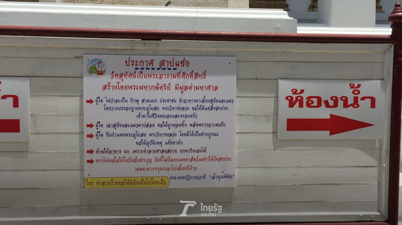 ทีมข่าว สายตรวจโซเชียล ไทยรัฐทีวี ได้ลงพื้นที่วัดสุทัศน์ฯ ย่านเสาชิงช้า เพื่อสอบถามถึงเรื่องดังกล่าว แต่ได้รับคำตอบจากเจ้าคุณพิพิธว่า อยู่ระหว่างเดินทางไปกิจนิมนต์นอกสถานที่ ทีมข่าวจึงลองเดินสำรวจรอบๆ บริเวณวัด พบว่าป้ายสาปแช่งติดอยู่ในพื้นที่บริเวณอุโบสถและศาลาการเปรียญ อย่างไรก็ตาม ยังคงมีคนนำอาหารมาเลี้ยงแมว ทีมข่าวจึงเข้าไปสอบถามบุคคลดังกล่าว ซึ่งเปิดเผยว่ารู้สึกสงสาร จึงนำอาหารมาให้แมวอยู่เป็นประจำ ทำแบบนี้มานาน 3 ปีแล้ว ที่ผ่านมาได้นำแมวจากวัดไปเลี้ยงที่บ้านแล้ว 3 ตัว ส่วนการที่วัดนำป้ายประกาศมาติดในลักษณะสาปแช่งนั้น ถือว่าเป็นสิทธิ์ของวัดที่จะทำได้