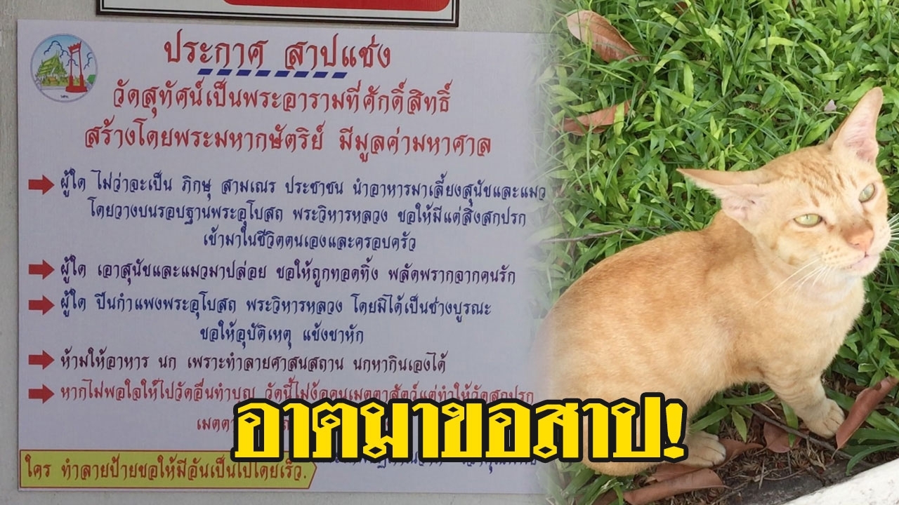 โลกโซเชียลแห่แชร์ภาพ เจ้าคุณพิพิธ วัดสุทัศน์ฯ ติดป้ายสาปแช่งคนนำอาหารมาเลี้ยงหมาแมว ล่าสุดผู้สื่อข่าวลงพื้นที่ พบคนไม่กลัวคำสาปแช่ง ยังคงนำอาหารมาให้แมว แถมรับไปเลี้ยงที่บ้านแล้ว 3 ตัว...